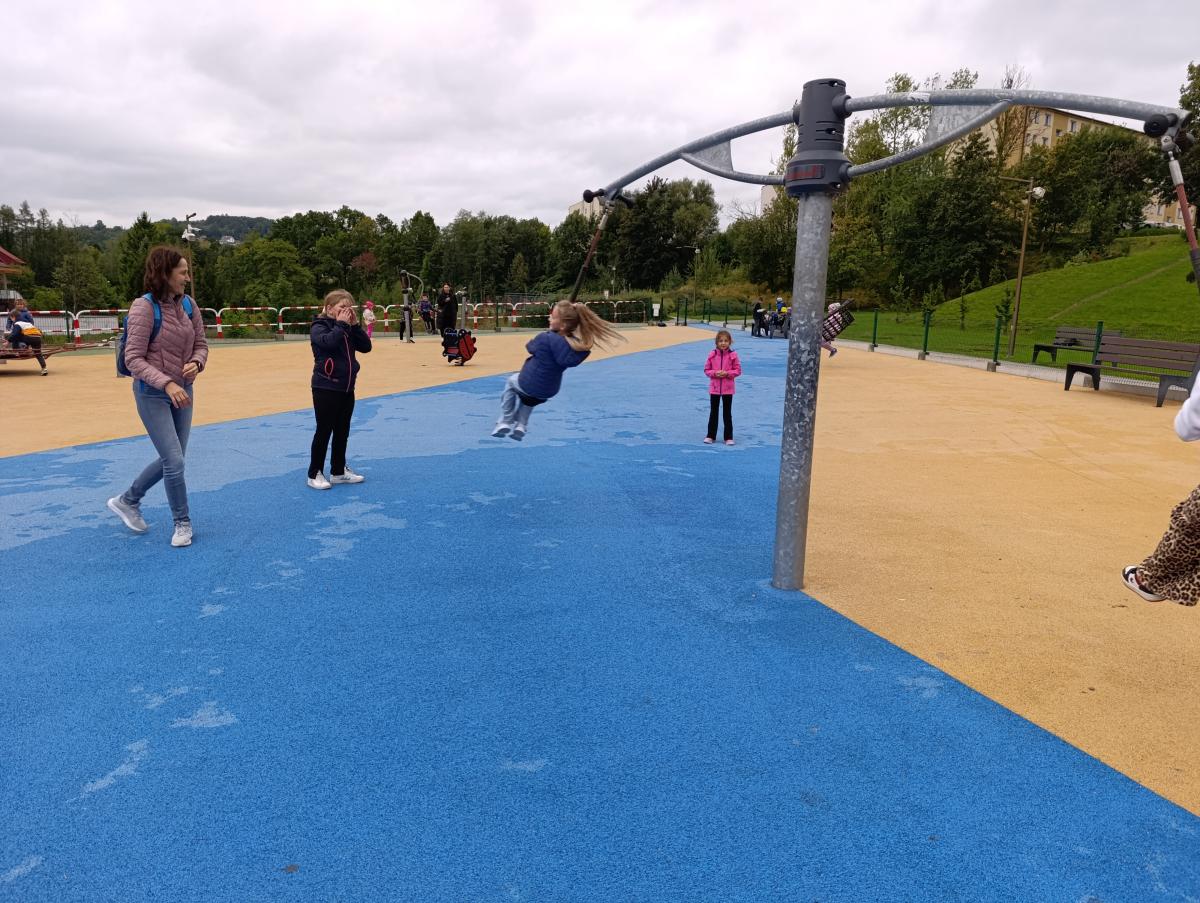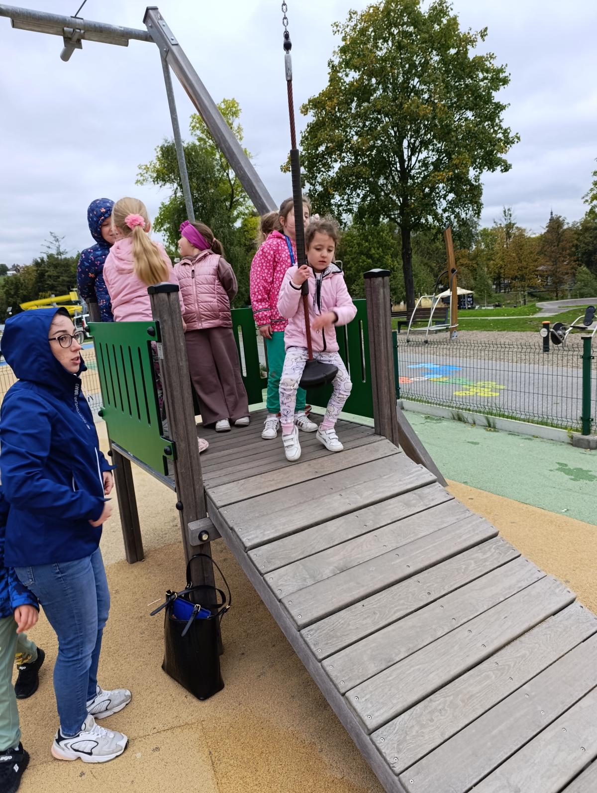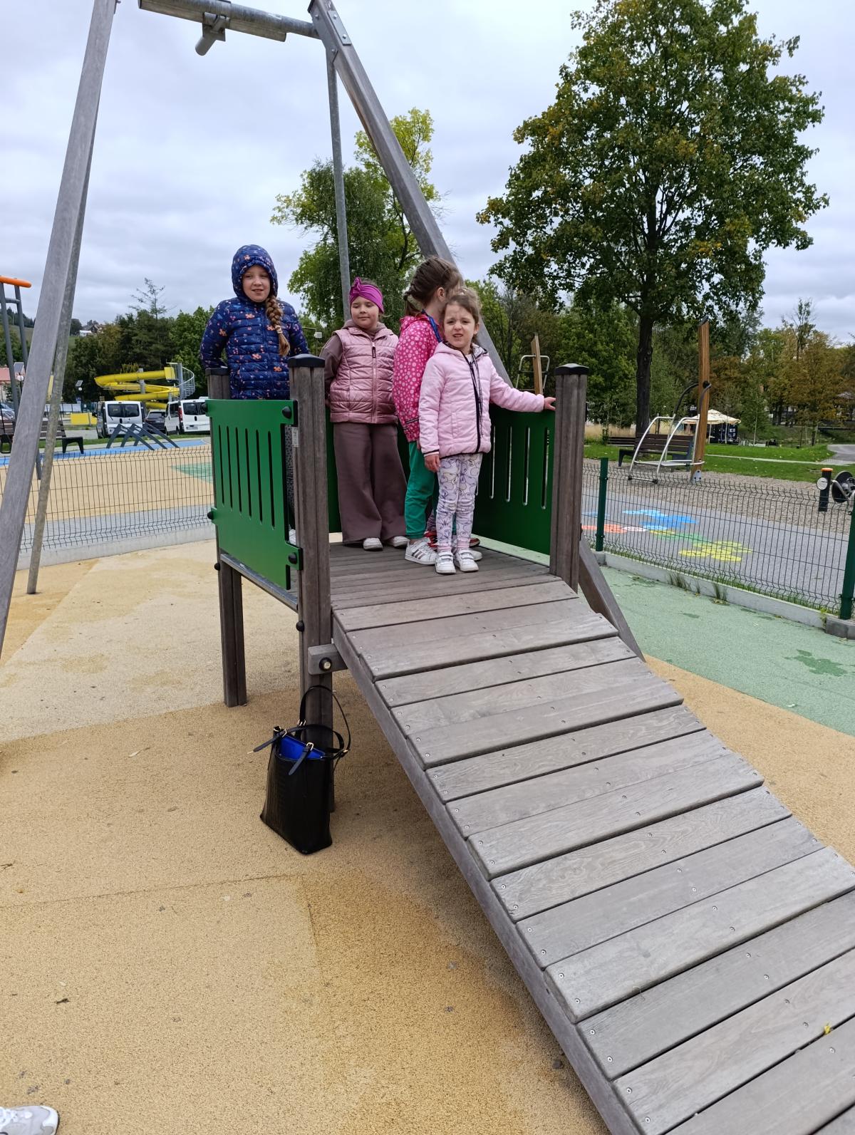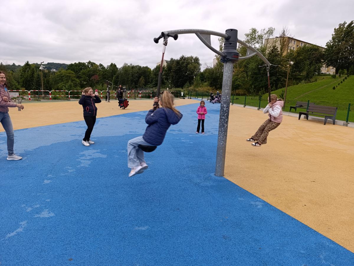 Po zakończeniu wszystkich atrakcji na terenie koszar, dzieci udały się na spacer do pobliskiego parku miejskiego, gdzie mogły odpocząć na świeżym powietrzu oraz skorzystać z tamtejszego placu zabaw. Wspólna zabawa i czas spędzony w otoczeniu przyrody były doskonałym zwieńczeniem pełnego wrażeń dnia.
