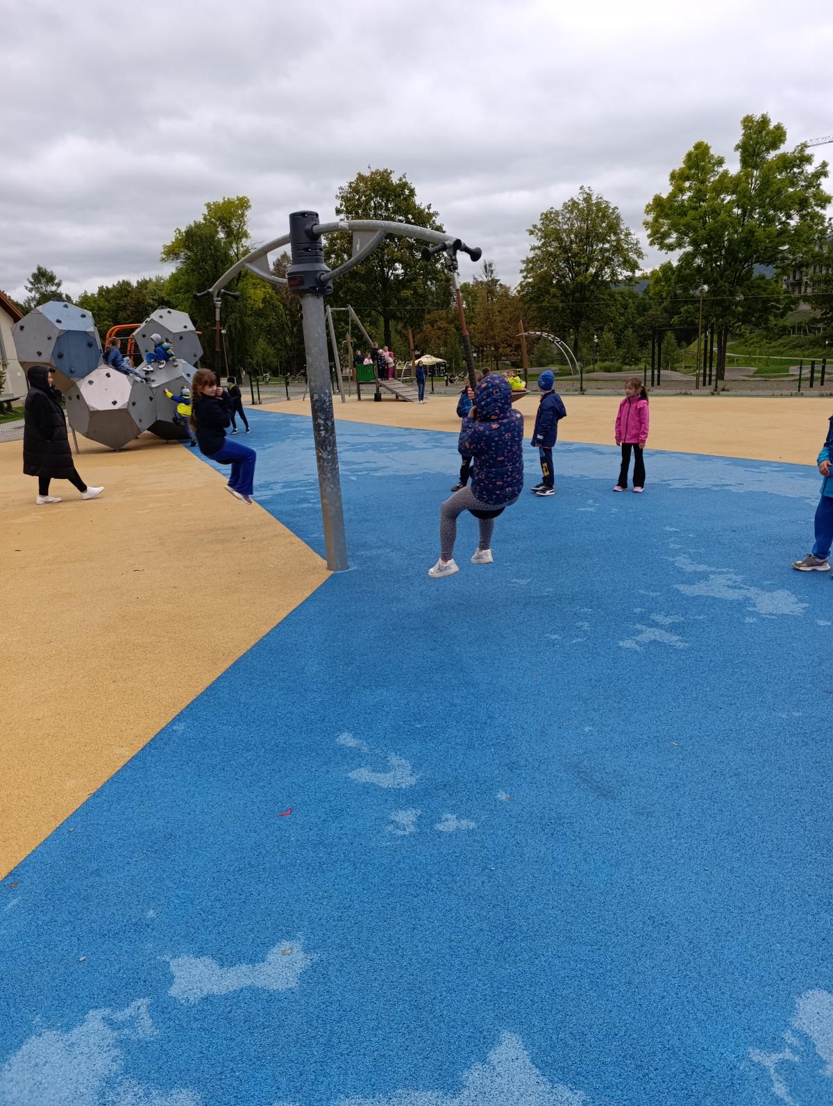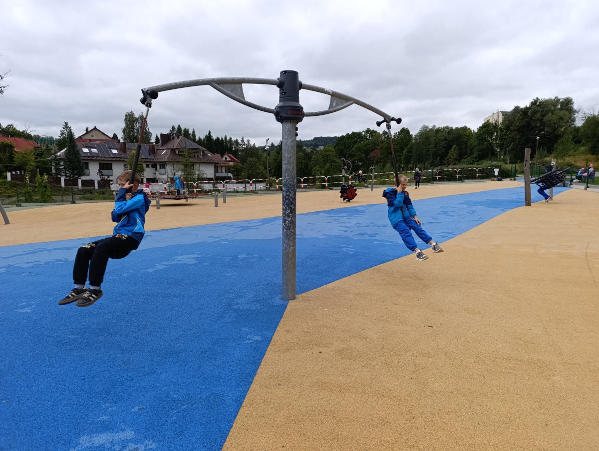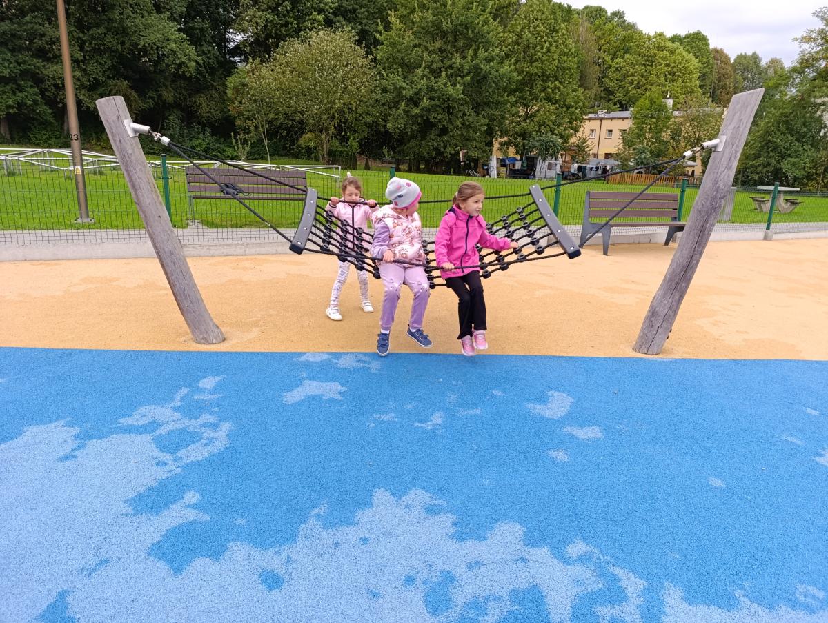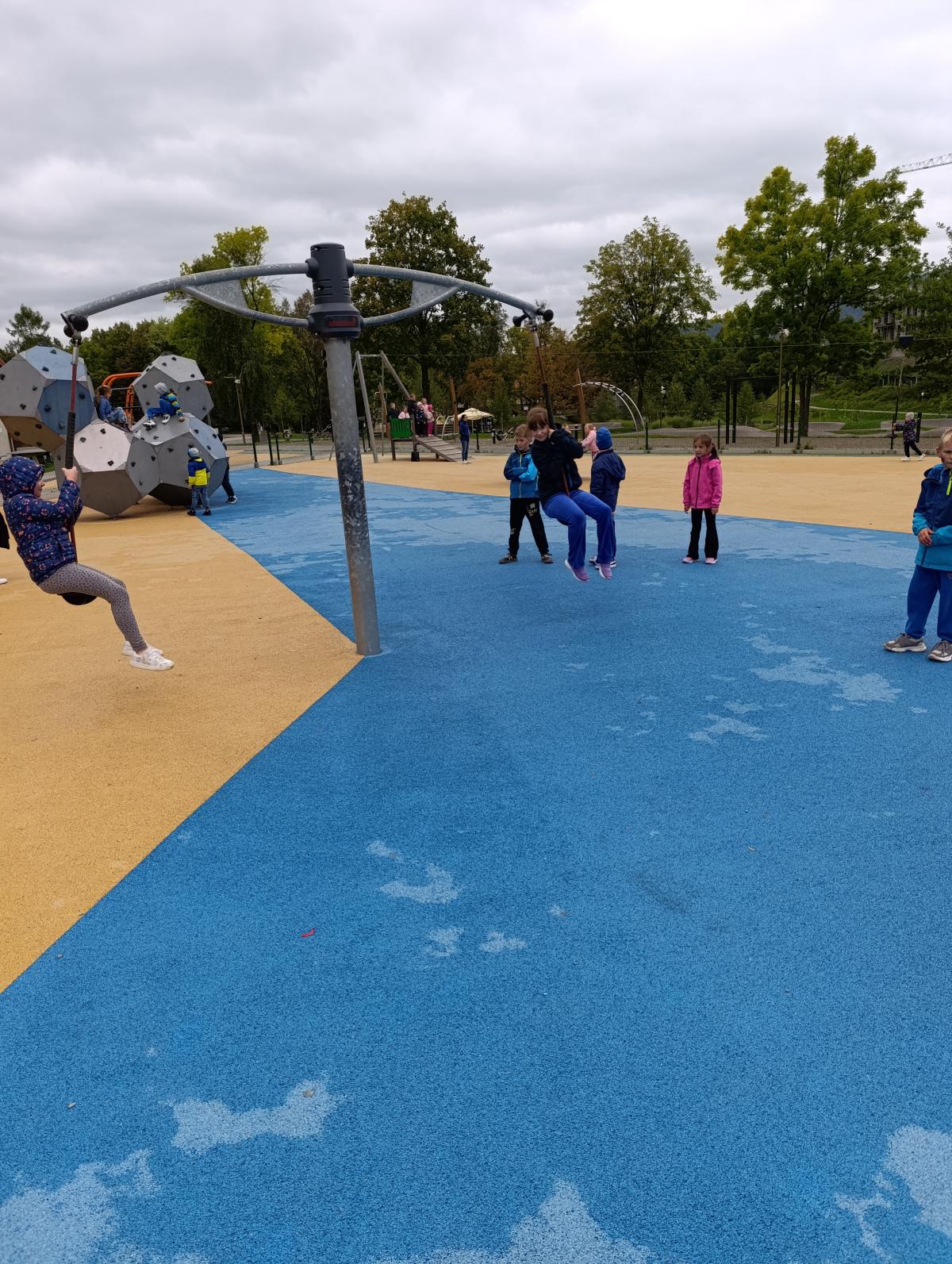 Po zakończeniu wszystkich atrakcji na terenie koszar, dzieci udały się na spacer do pobliskiego parku miejskiego, gdzie mogły odpocząć na świeżym powietrzu oraz skorzystać z tamtejszego placu zabaw. Wspólna zabawa i czas spędzony w otoczeniu przyrody były doskonałym zwieńczeniem pełnego wrażeń dnia.