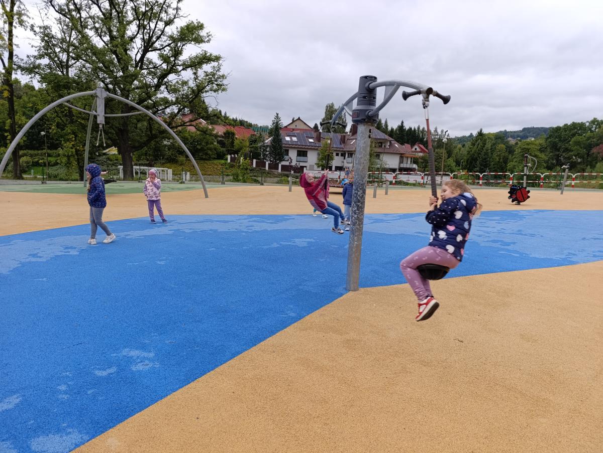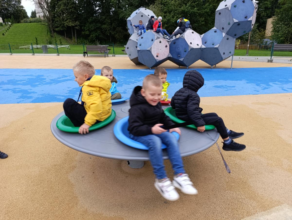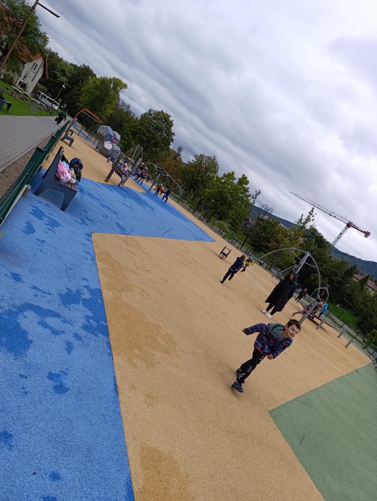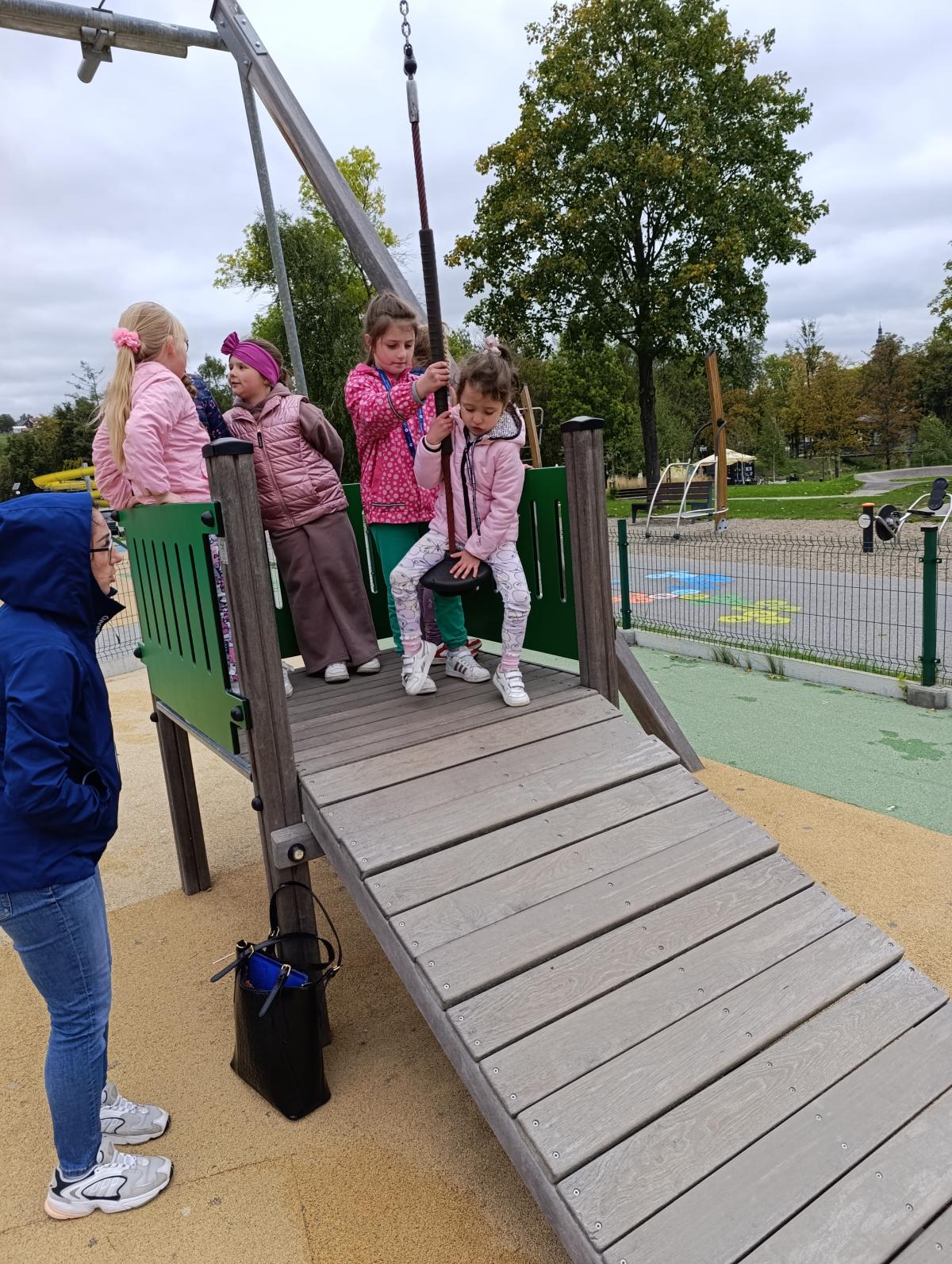 Po zakończeniu wszystkich atrakcji na terenie koszar, dzieci udały się na spacer do pobliskiego parku miejskiego, gdzie mogły odpocząć na świeżym powietrzu oraz skorzystać z tamtejszego placu zabaw. Wspólna zabawa i czas spędzony w otoczeniu przyrody były doskonałym zwieńczeniem pełnego wrażeń dnia.