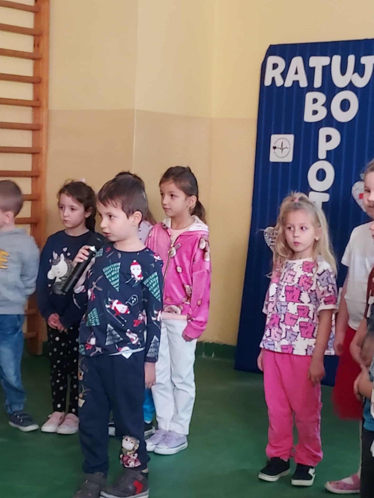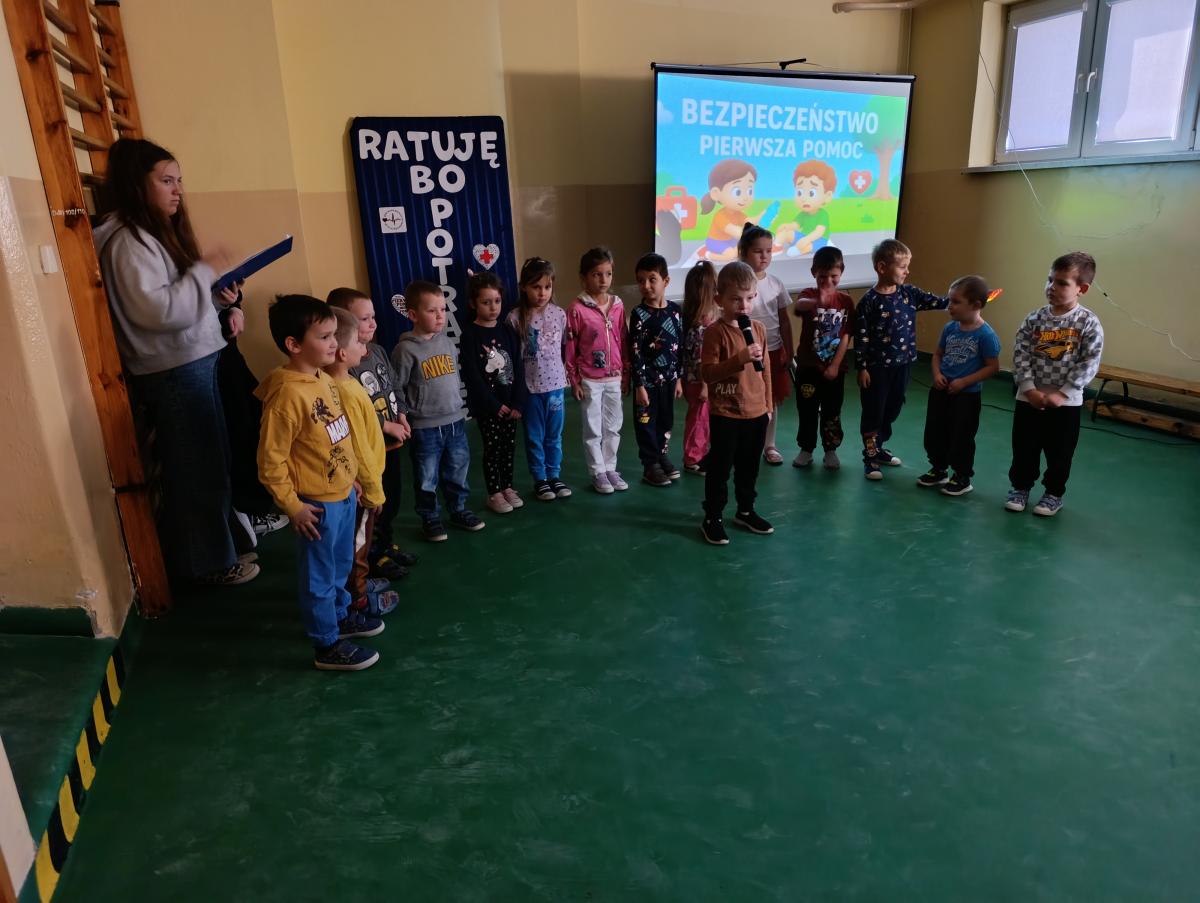 Jako pierwsi zaprezentowali się przedszkolacy, którzy w krótkiej inscenizacji pokazali, że nawet najmłodsi potrafią wezwać pomoc, znają numer alarmowy i wiedzą, jak zachować się, gdy ktoś potrzebuje wsparcia. Z entuzjazmem zaśpiewali również piosenkę o pierwszej pomocy, podkreślając, że odwaga i wiedza mogą uratować życie.