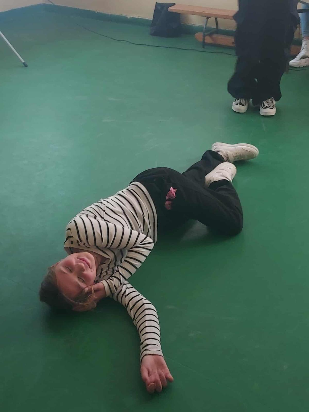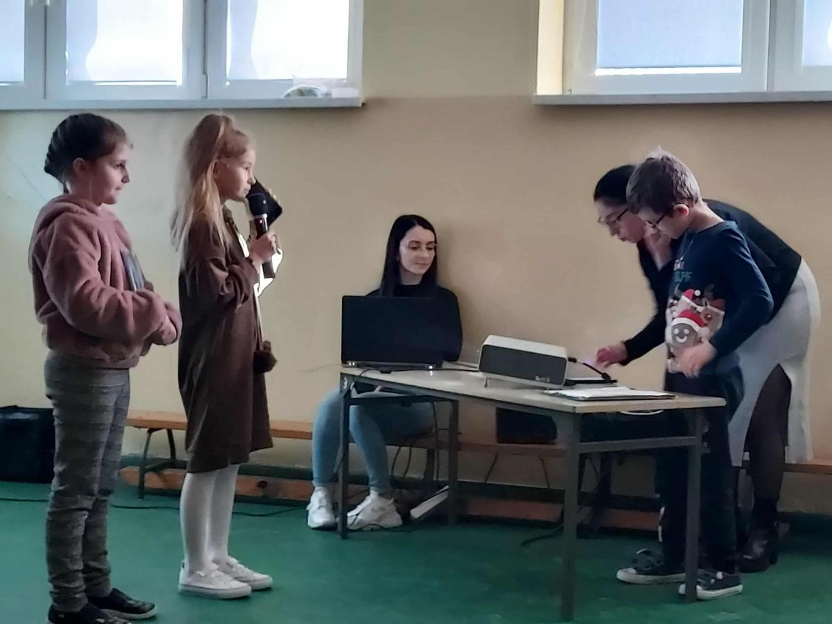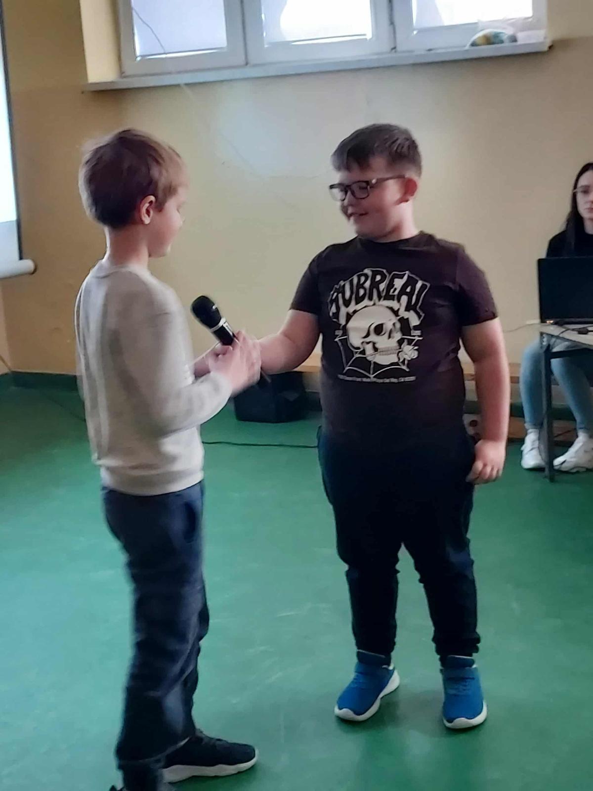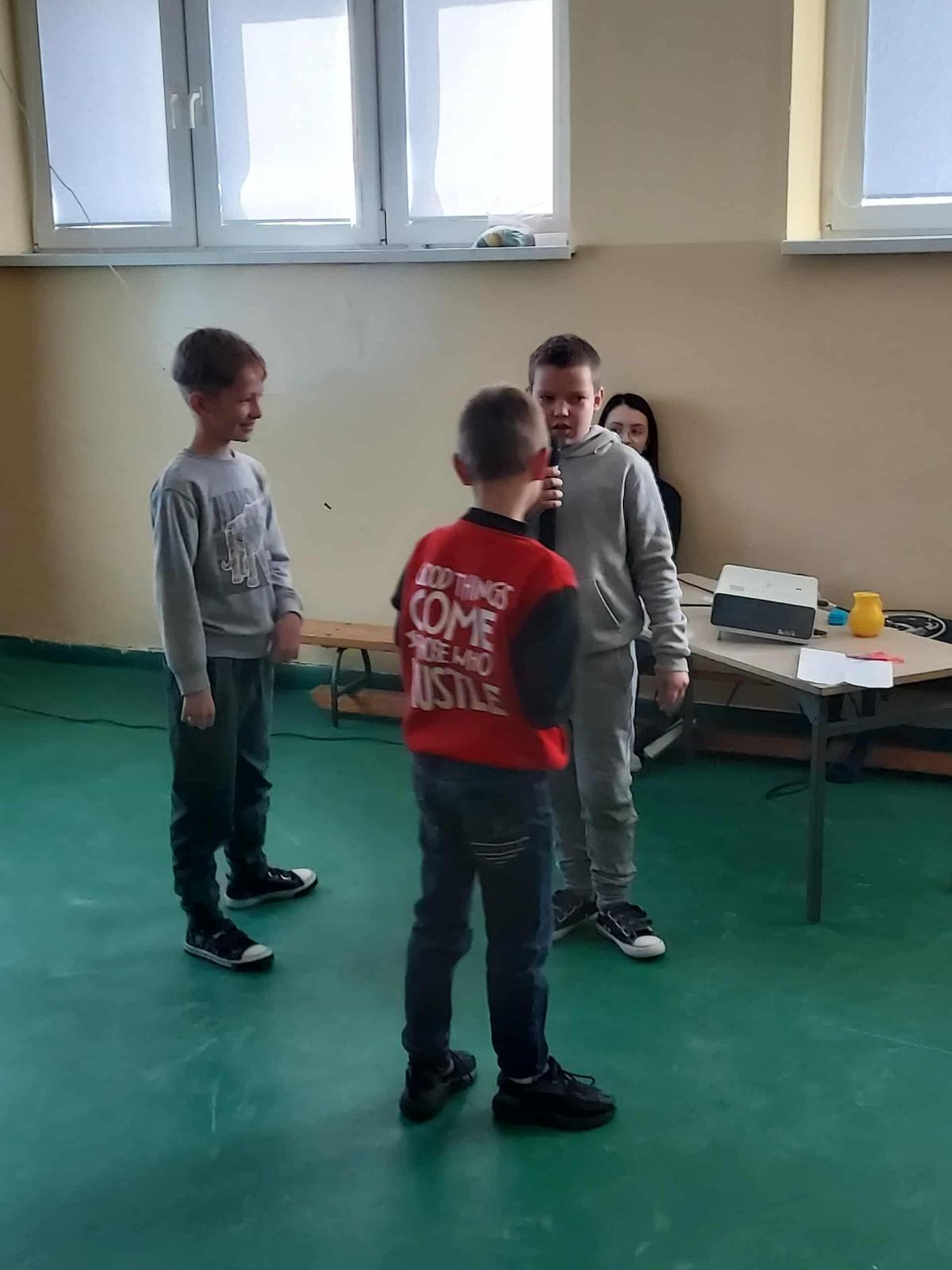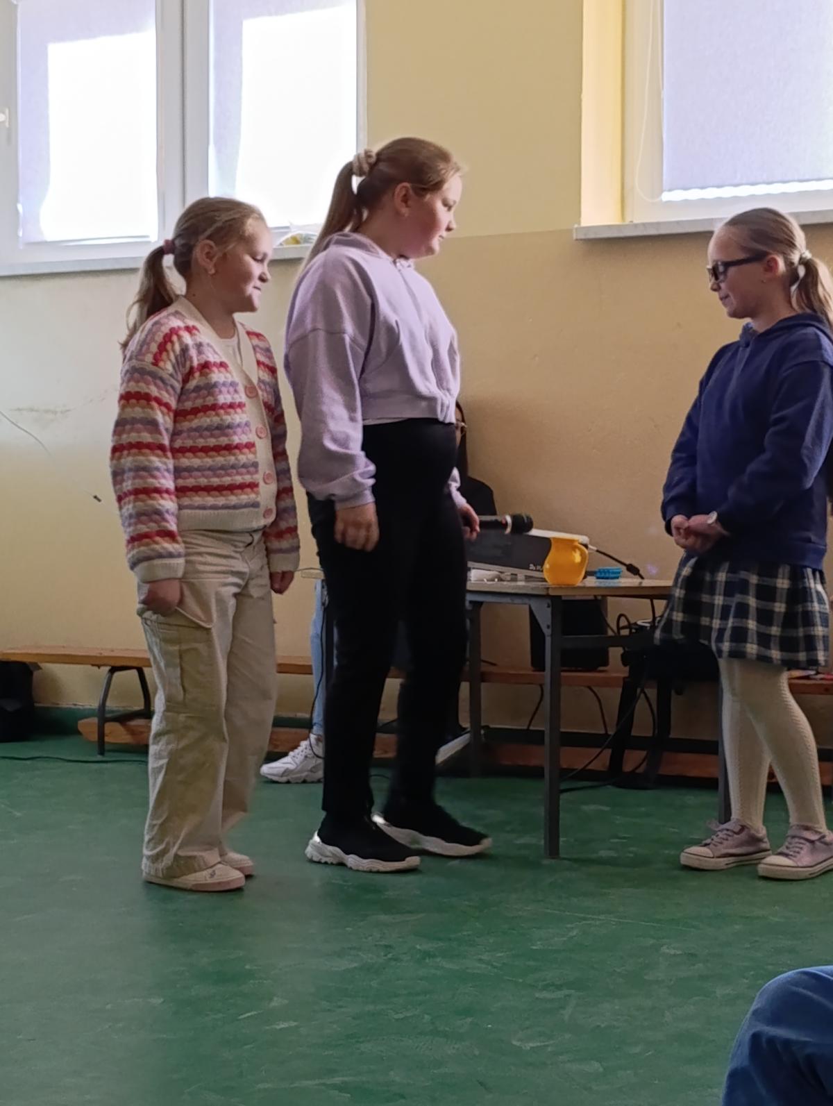 Następnie uczniowie klas I–III przedstawili scenki sytuacyjne, w których pokazali, jak udzielić pomocy koledze, który się przewrócił, jak właściwie opatrzyć drobną ranę oraz jak zachować spokój w trudnych sytuacjach. Ich występy były nie tylko pouczające, ale także pełne zaangażowania.