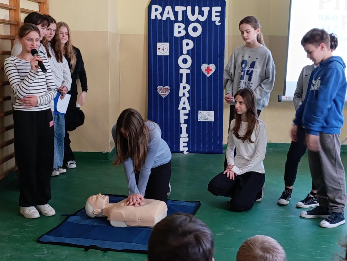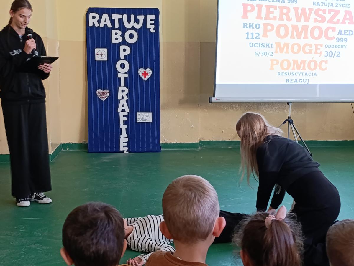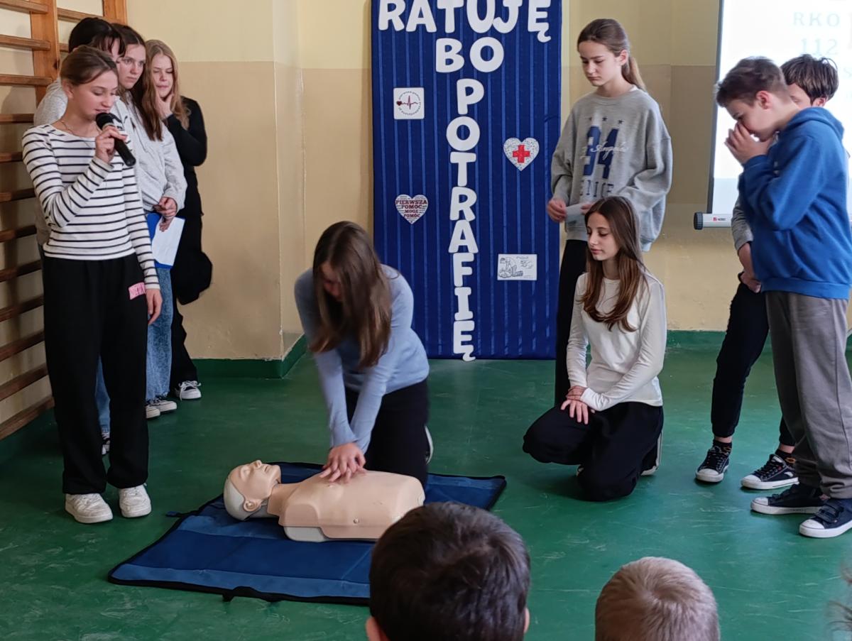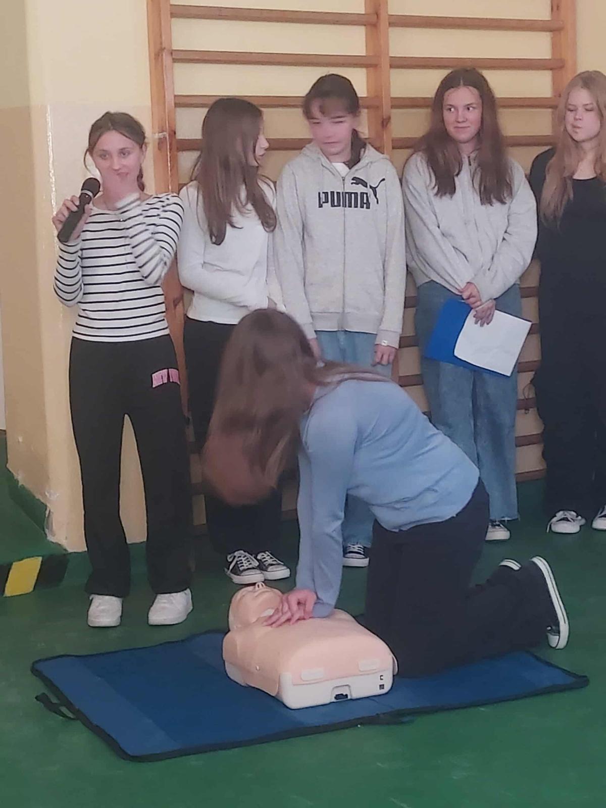 Uczniowie klas IV–VIII zaprezentowali bardziej zaawansowane treści. W swoich pokazach omówili zasady resuscytacji krążeniowo-oddechowej, pozycję boczną bezpieczną oraz sposób postępowania w przypadku zadławień czy omdleń. Starsi uczniowie przygotowali również krótkie prezentacje multimedialne oraz pokaz praktycznych umiejętności, wykorzystując fantom do nauki RKO.