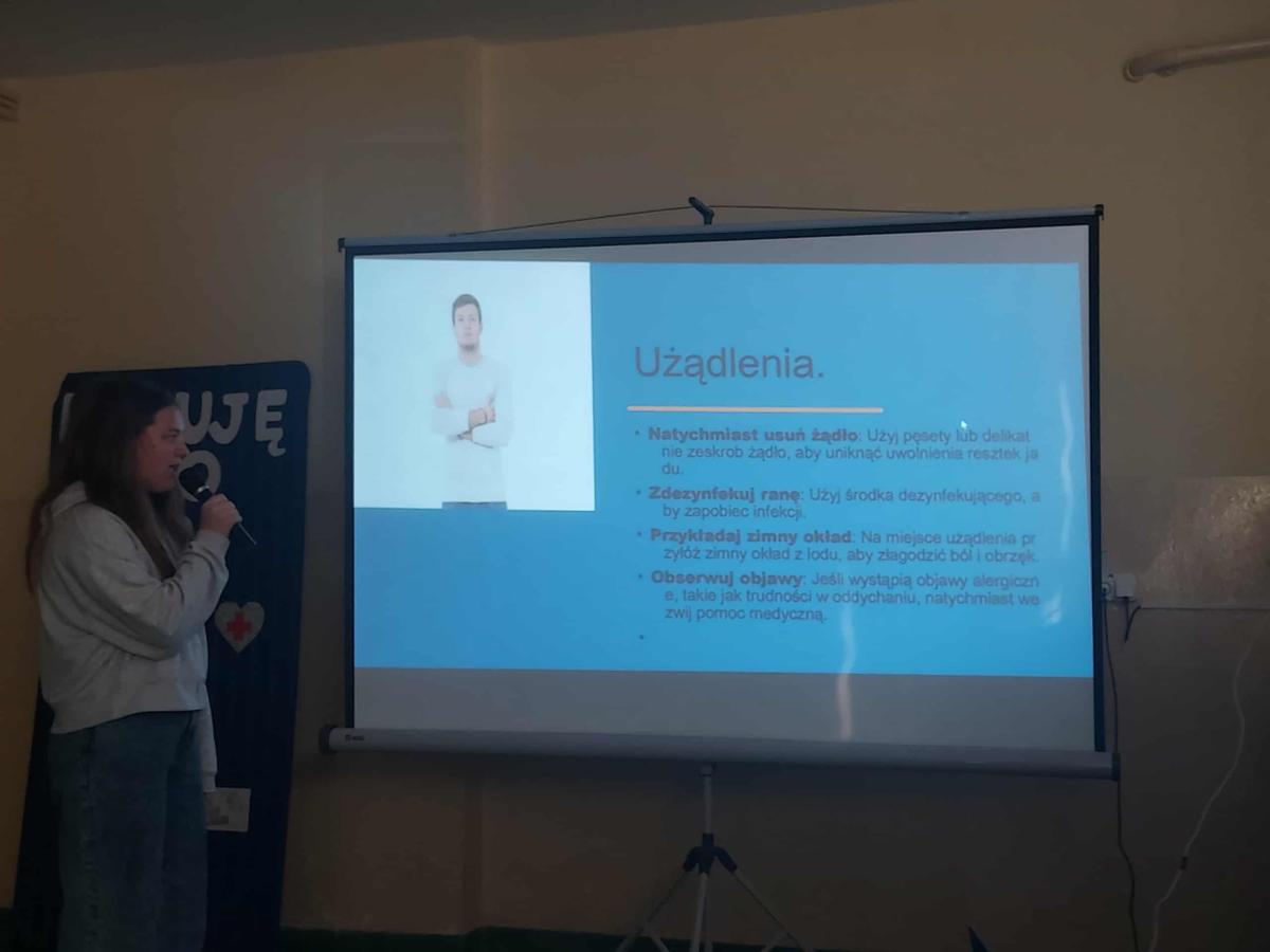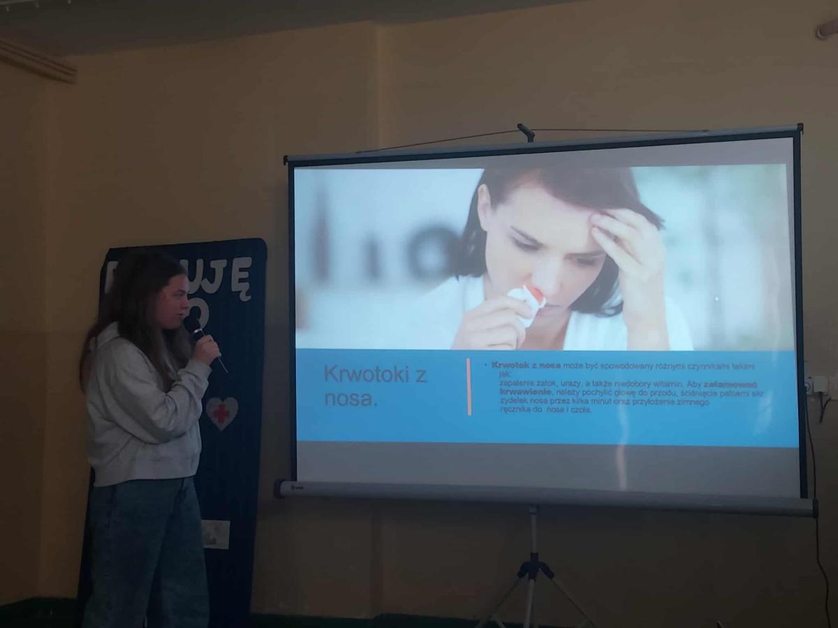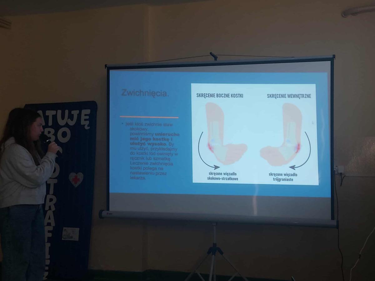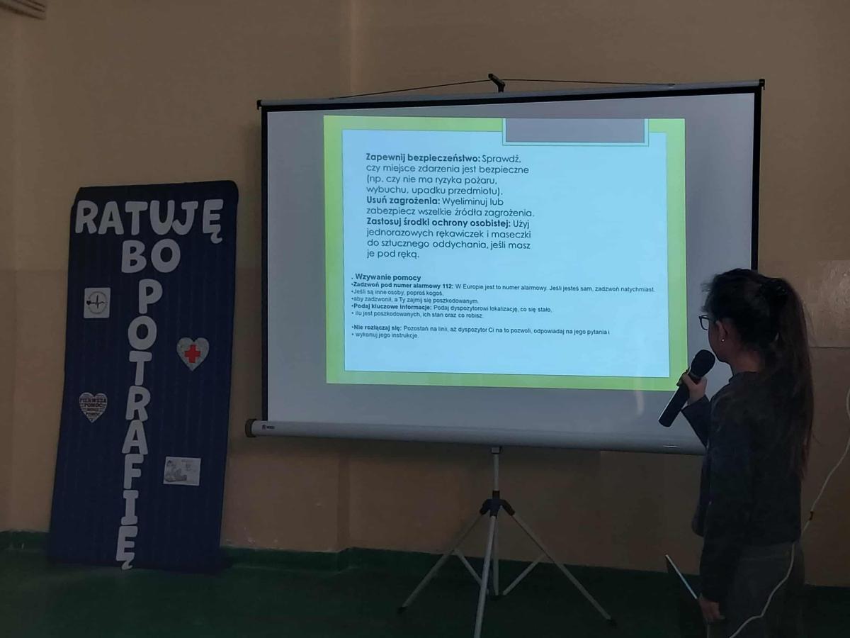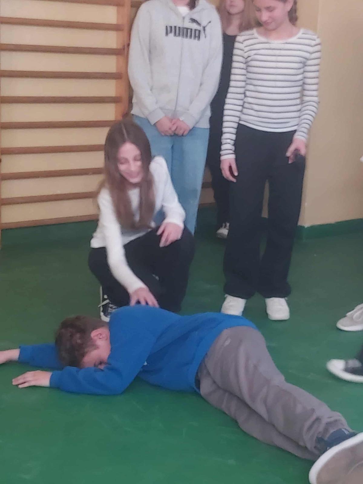 Uczniowie klas IV–VIII zaprezentowali bardziej zaawansowane treści. W swoich pokazach omówili zasady resuscytacji krążeniowo-oddechowej, pozycję boczną bezpieczną oraz sposób postępowania w przypadku zadławień czy omdleń. Starsi uczniowie przygotowali również krótkie prezentacje multimedialne oraz pokaz praktycznych umiejętności, wykorzystując fantom do nauki RKO.