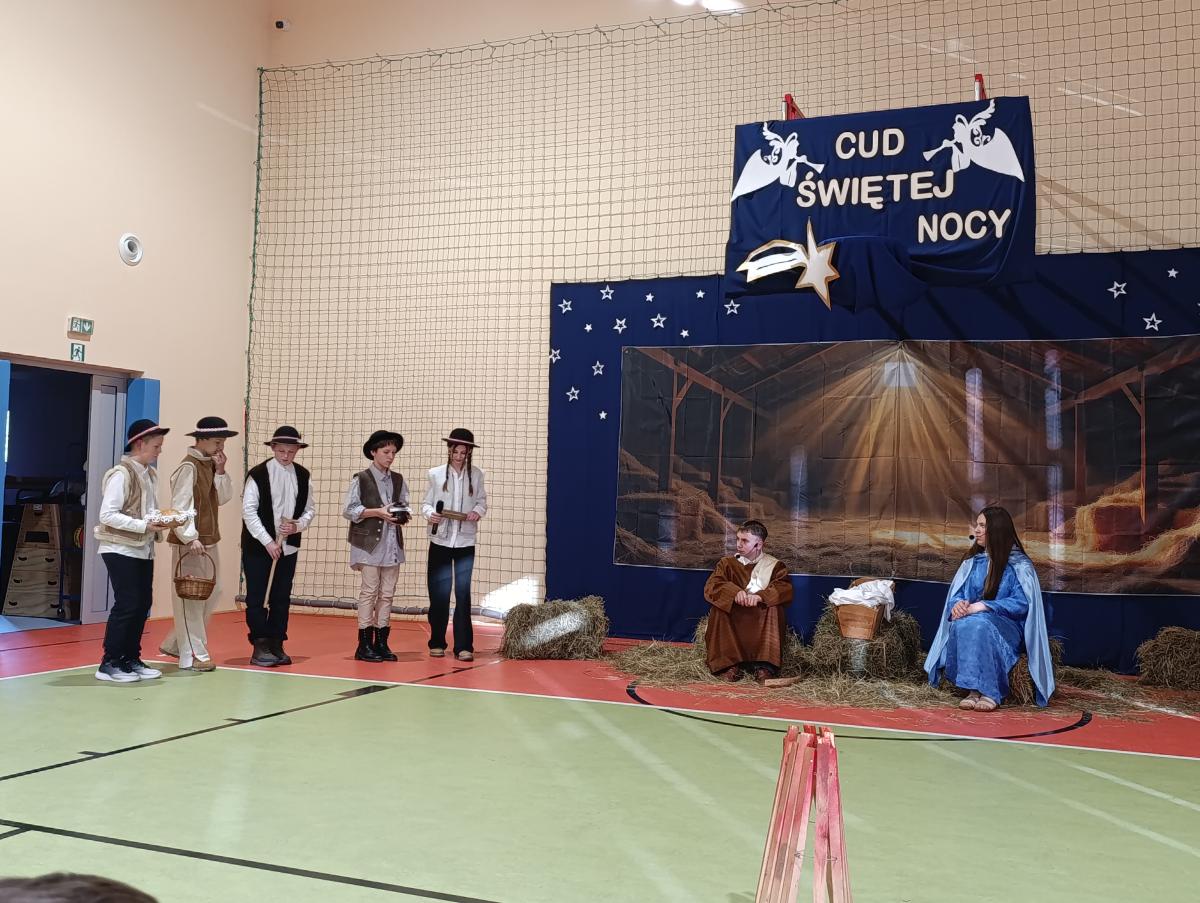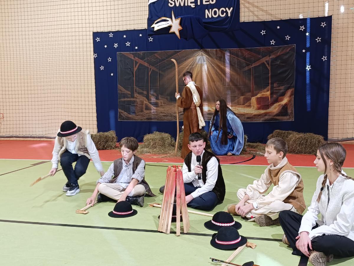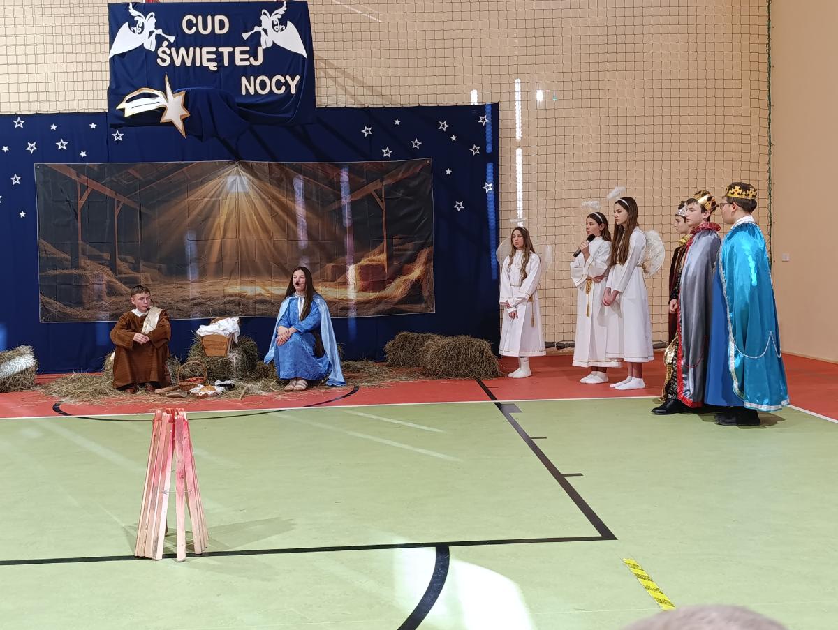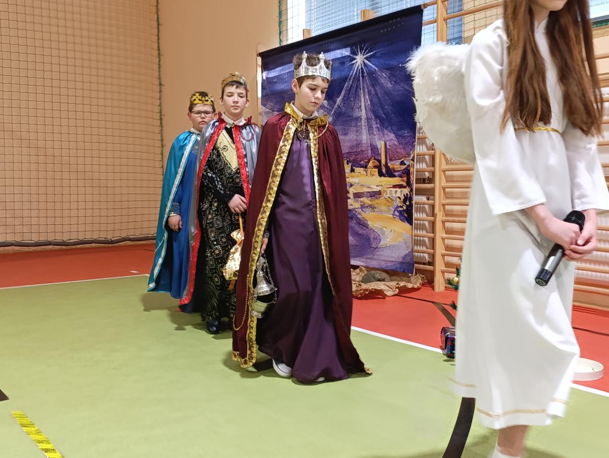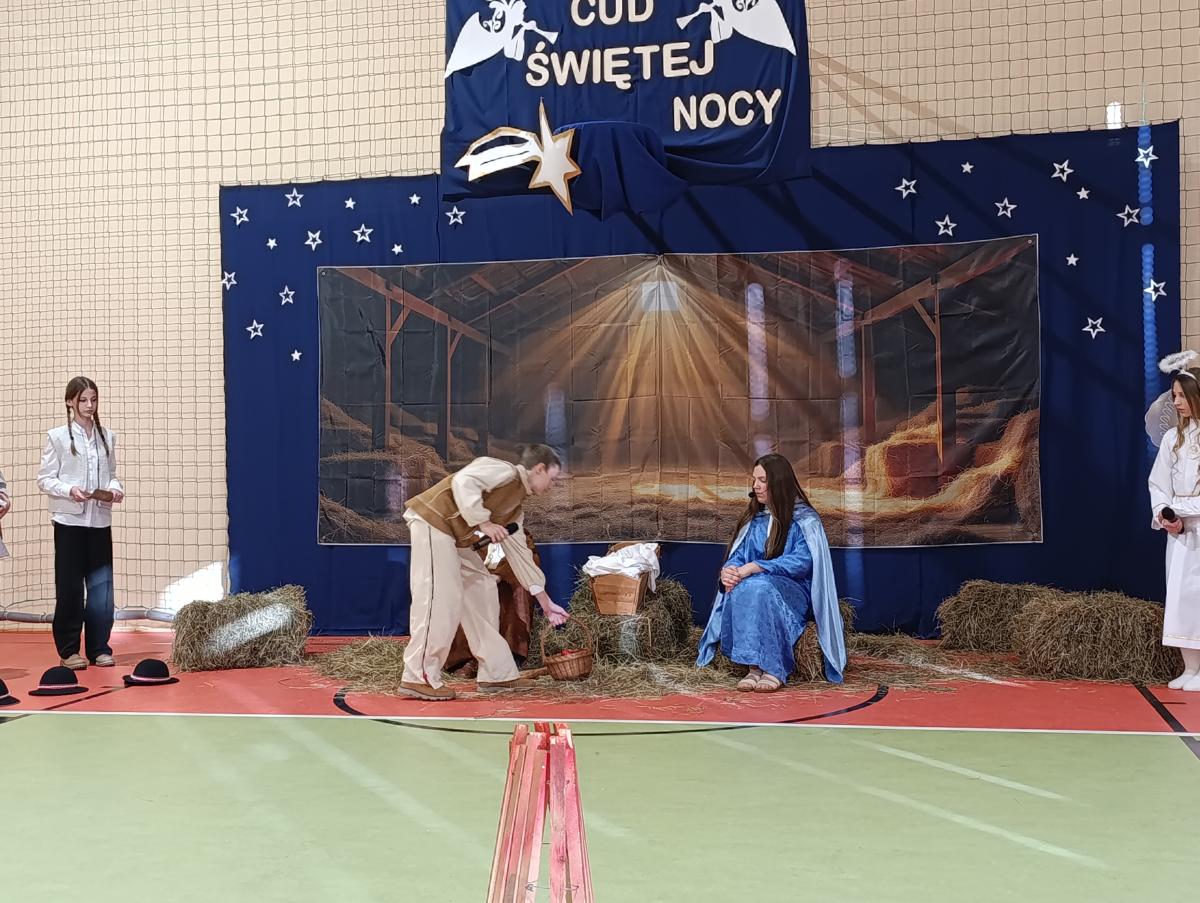 19 grudnia w naszej szkole odbyły się Jasełka Bożonarodzeniowe przygotowane przez uczniów klas starszych. Przedstawienie w sposób podniosły i refleksyjny ukazało historię narodzenia Jezusa Chrystusa. Starannie przygotowana scenografia, odpowiednio dobrane stroje oraz oprawa muzyczna w postaci kolęd i pastorałek stworzyły wyjątkową, świąteczną atmosferę.