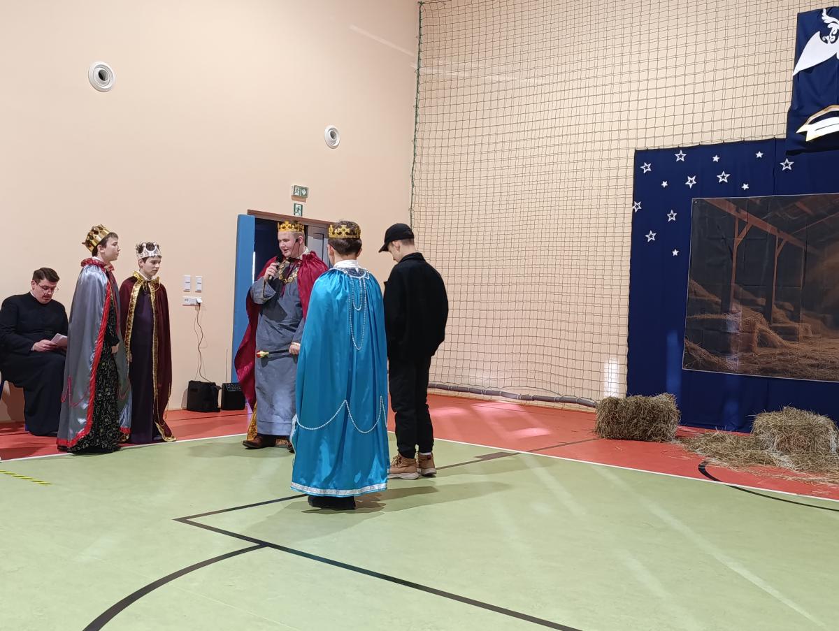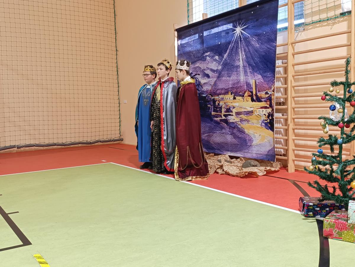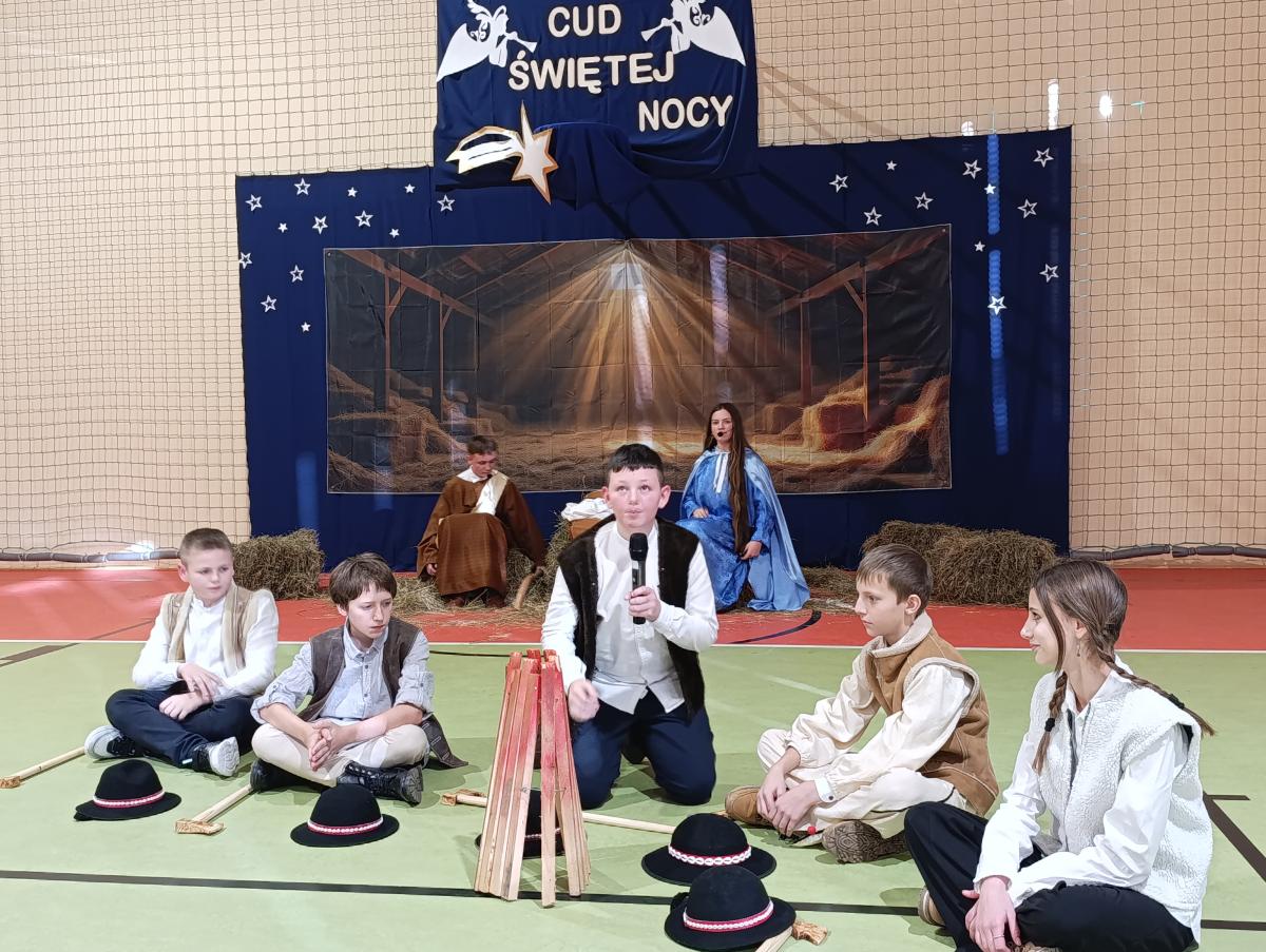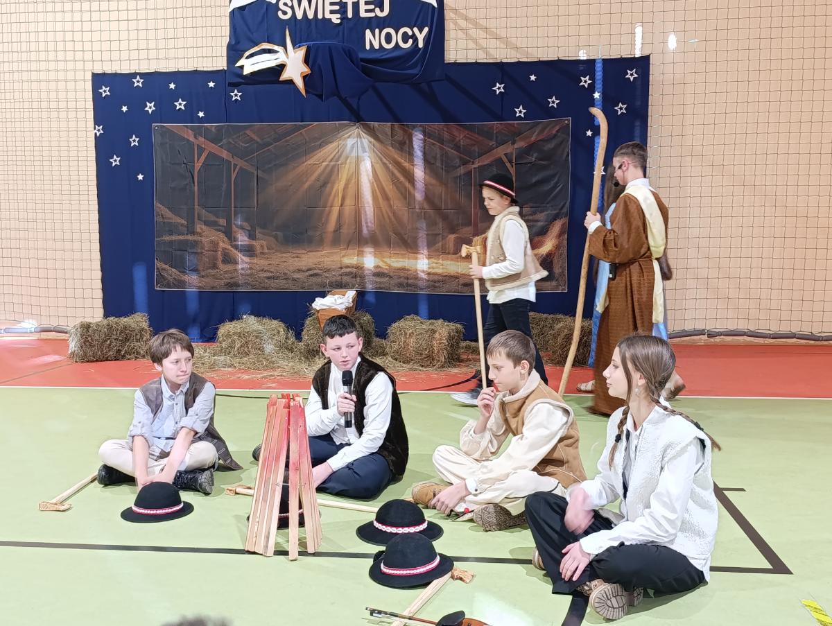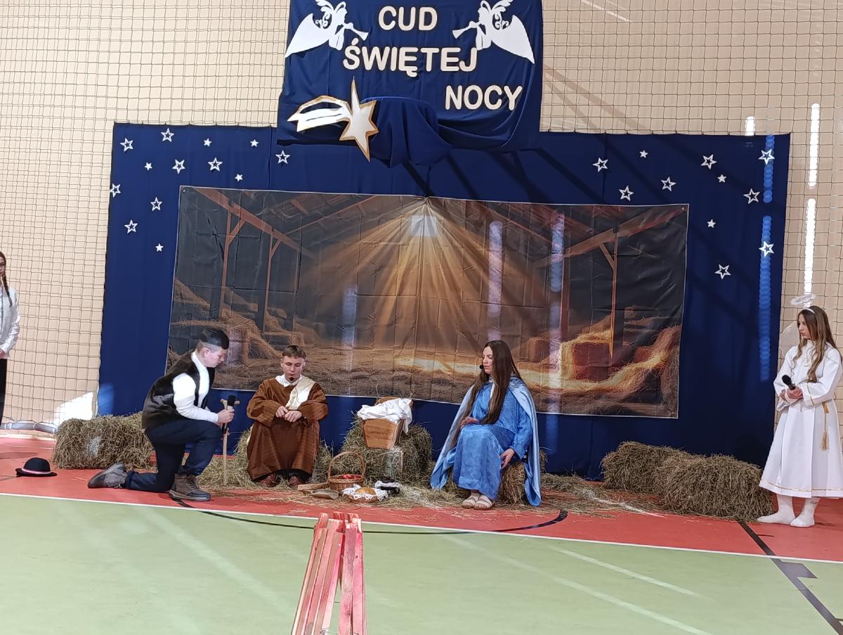19 grudnia w naszej szkole odbyły się Jasełka Bożonarodzeniowe przygotowane przez uczniów klas starszych. Przedstawienie w sposób podniosły i refleksyjny ukazało historię narodzenia Jezusa Chrystusa. Starannie przygotowana scenografia, odpowiednio dobrane stroje oraz oprawa muzyczna w postaci kolęd i pastorałek stworzyły wyjątkową, świąteczną atmosferę.