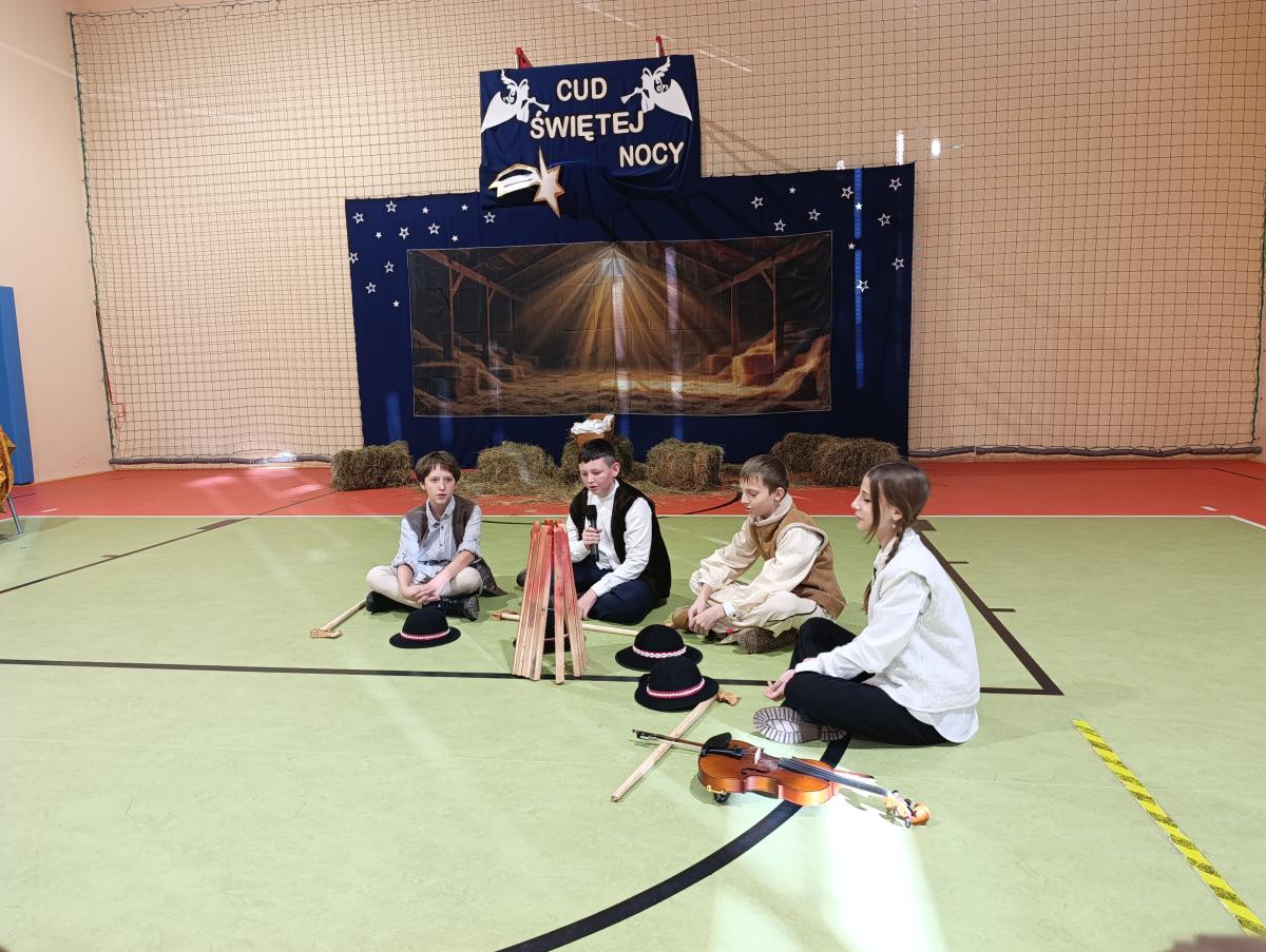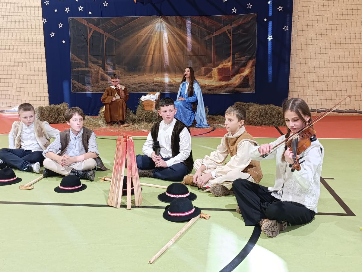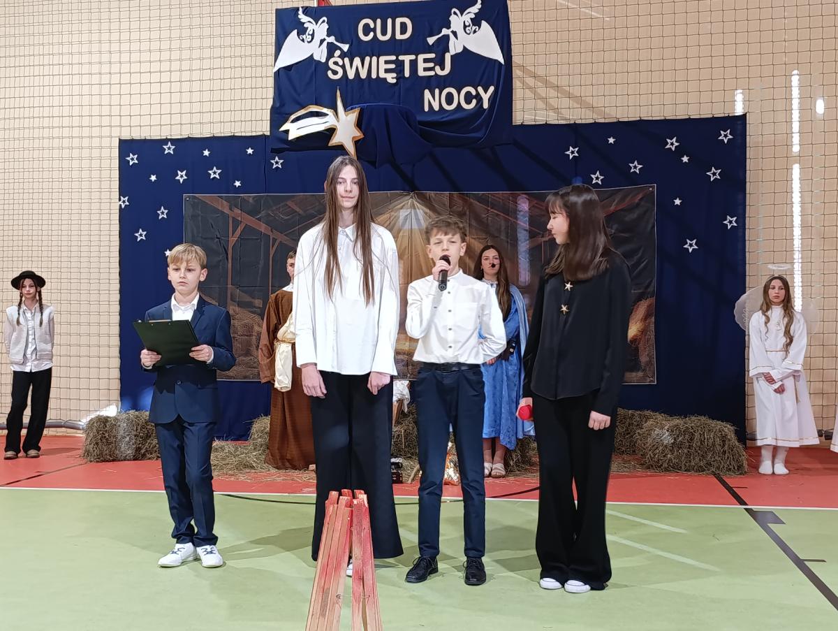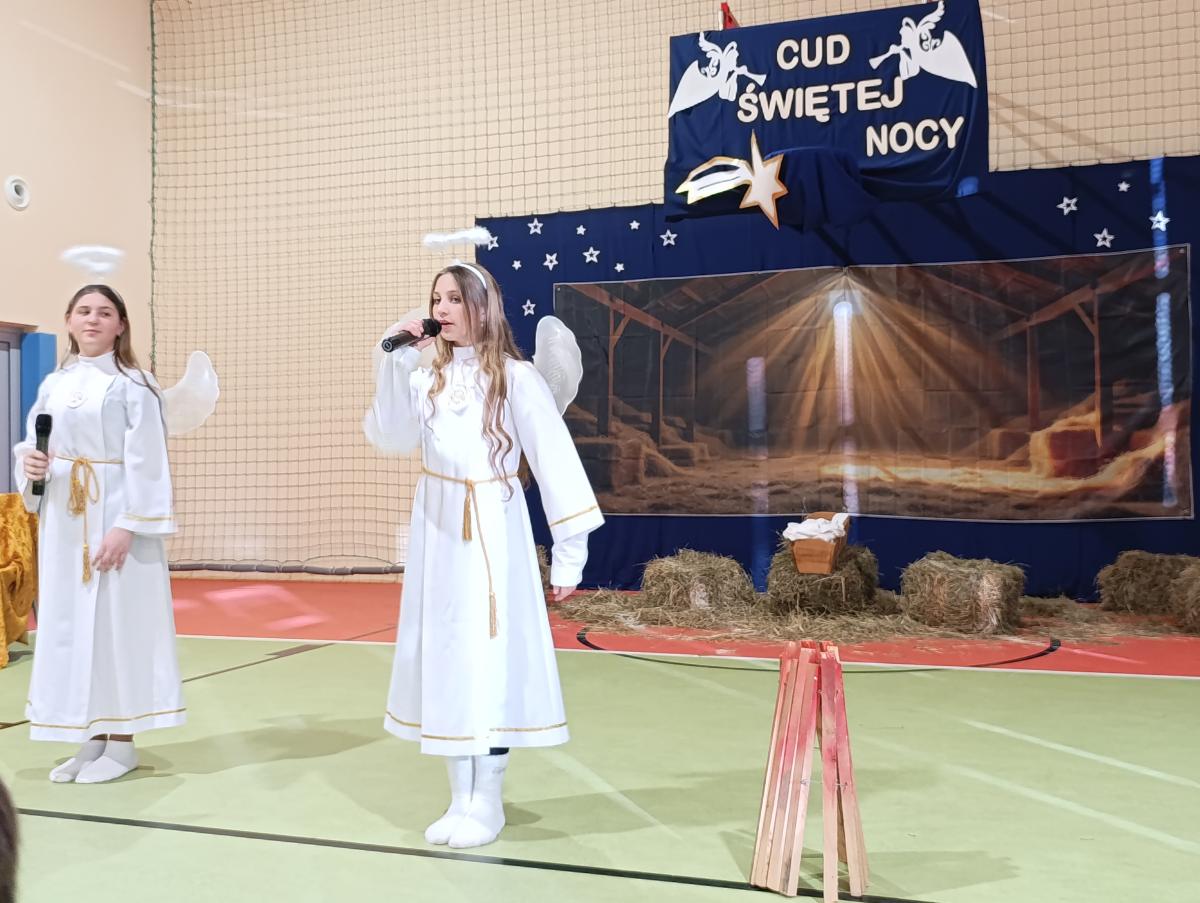 19 grudnia w naszej szkole odbyły się Jasełka Bożonarodzeniowe przygotowane przez uczniów klas starszych. Przedstawienie w sposób podniosły i refleksyjny ukazało historię narodzenia Jezusa Chrystusa. Starannie przygotowana scenografia, odpowiednio dobrane stroje oraz oprawa muzyczna w postaci kolęd i pastorałek stworzyły wyjątkową, świąteczną atmosferę.