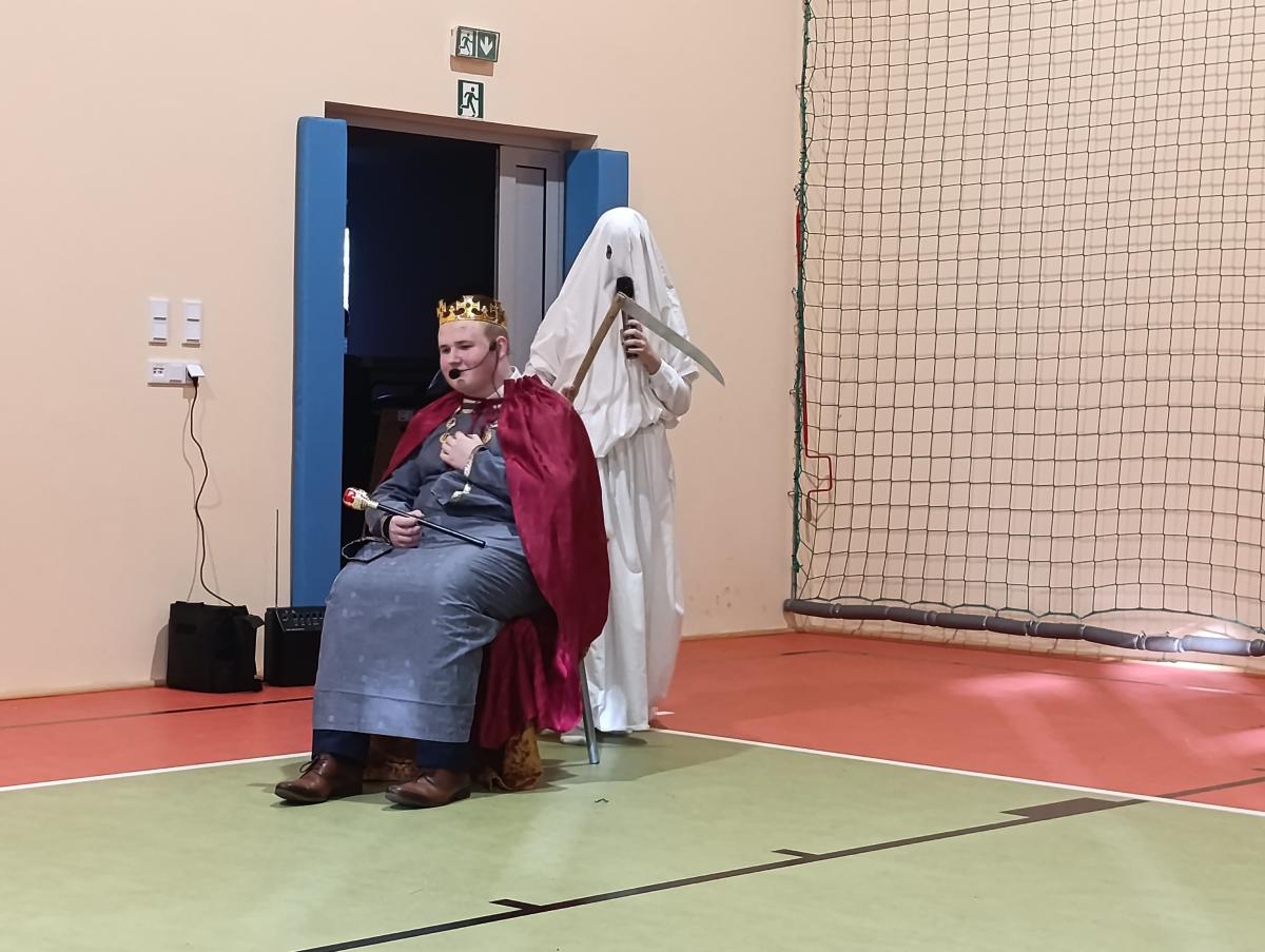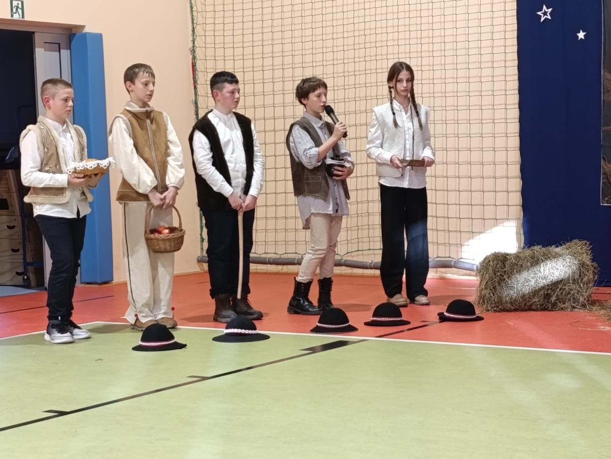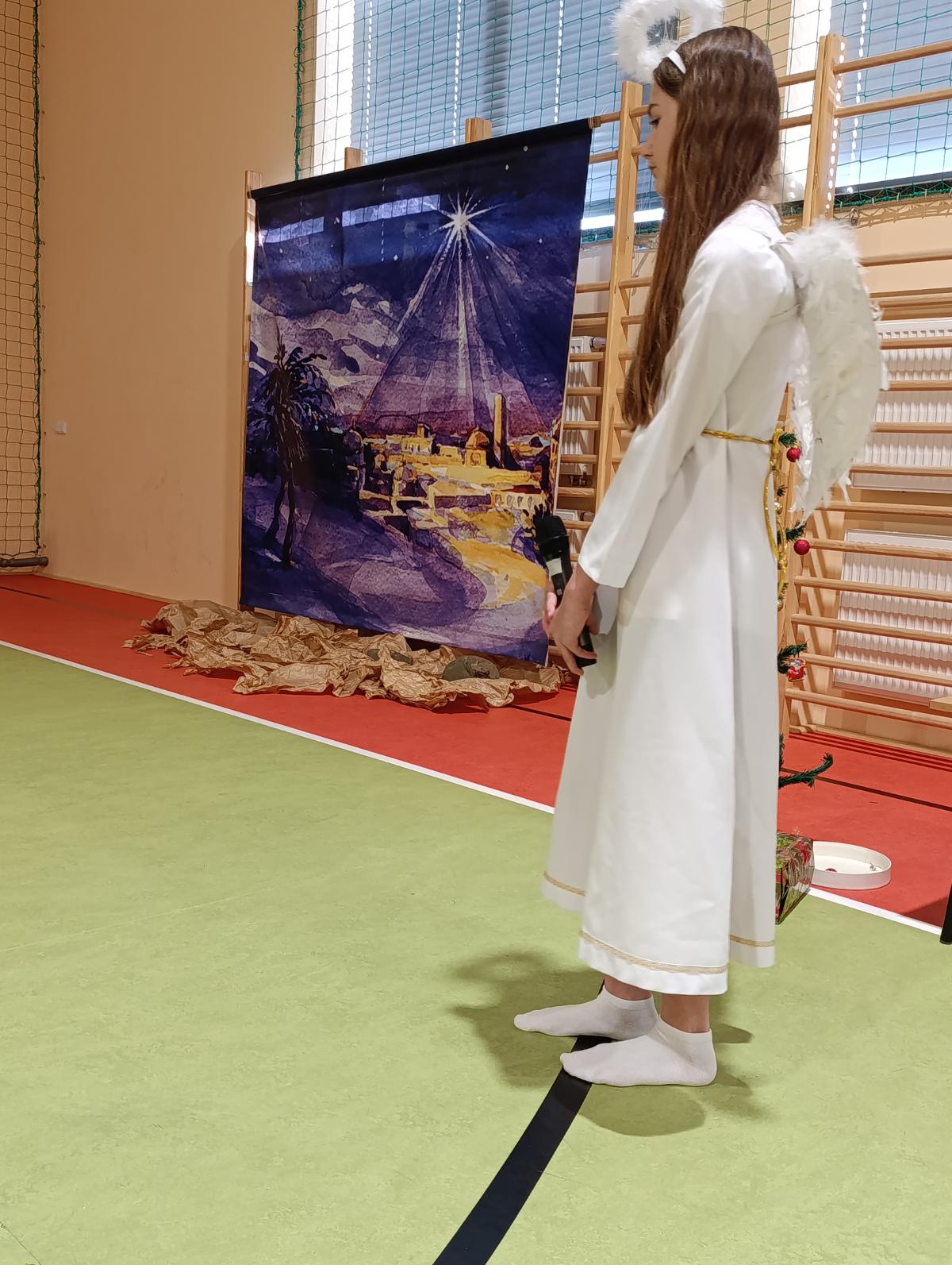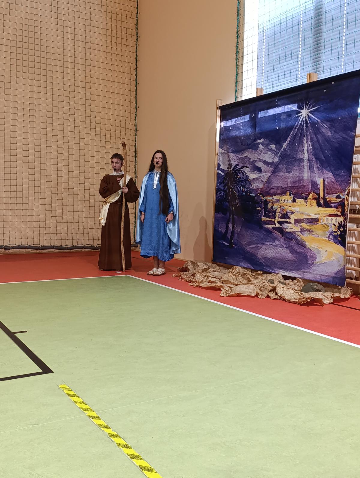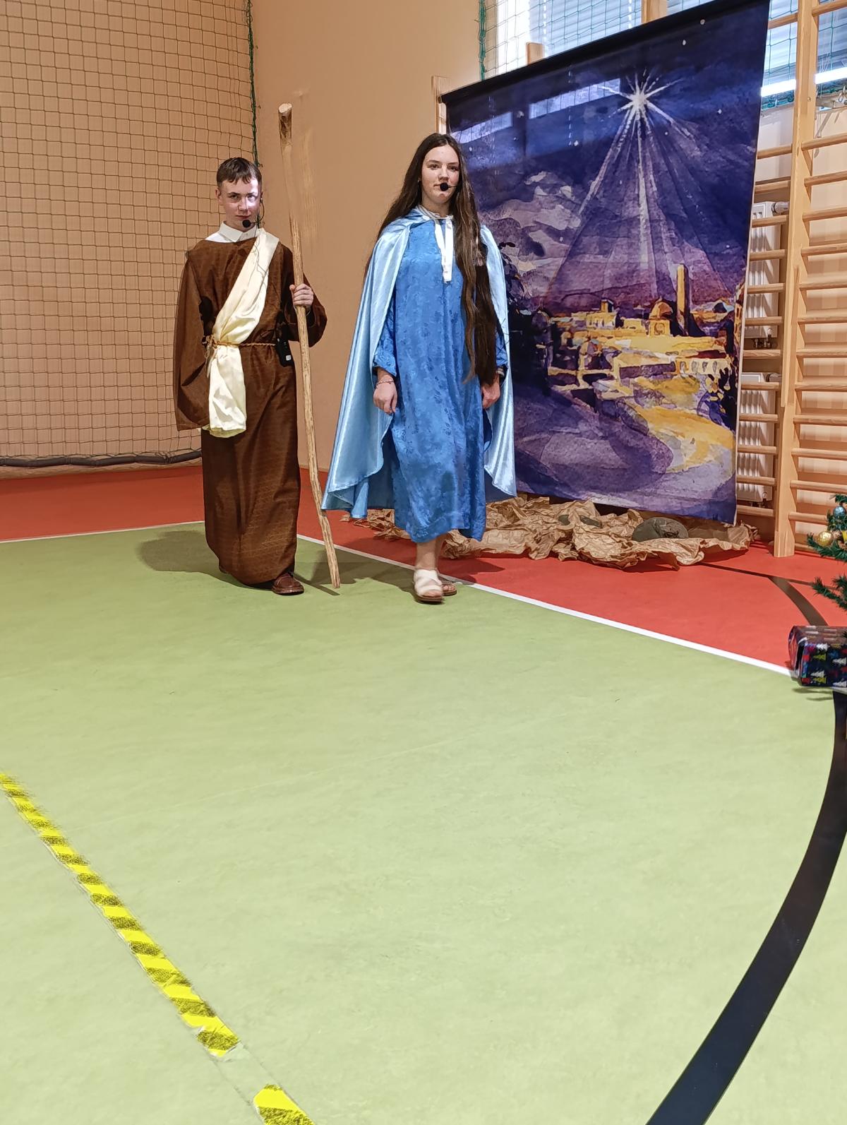 19 grudnia w naszej szkole odbyły się Jasełka Bożonarodzeniowe przygotowane przez uczniów klas starszych. Przedstawienie w sposób podniosły i refleksyjny ukazało historię narodzenia Jezusa Chrystusa. Starannie przygotowana scenografia, odpowiednio dobrane stroje oraz oprawa muzyczna w postaci kolęd i pastorałek stworzyły wyjątkową, świąteczną atmosferę.