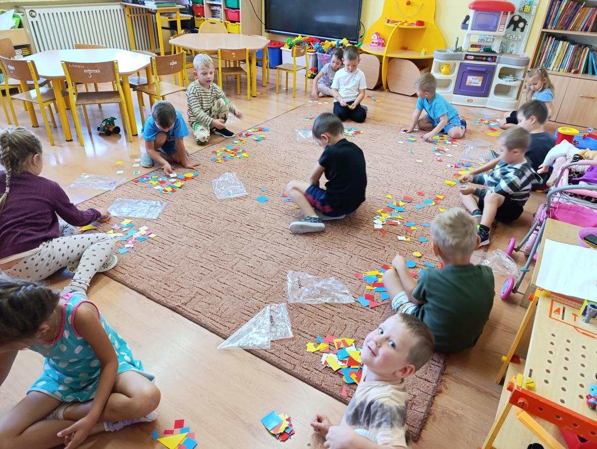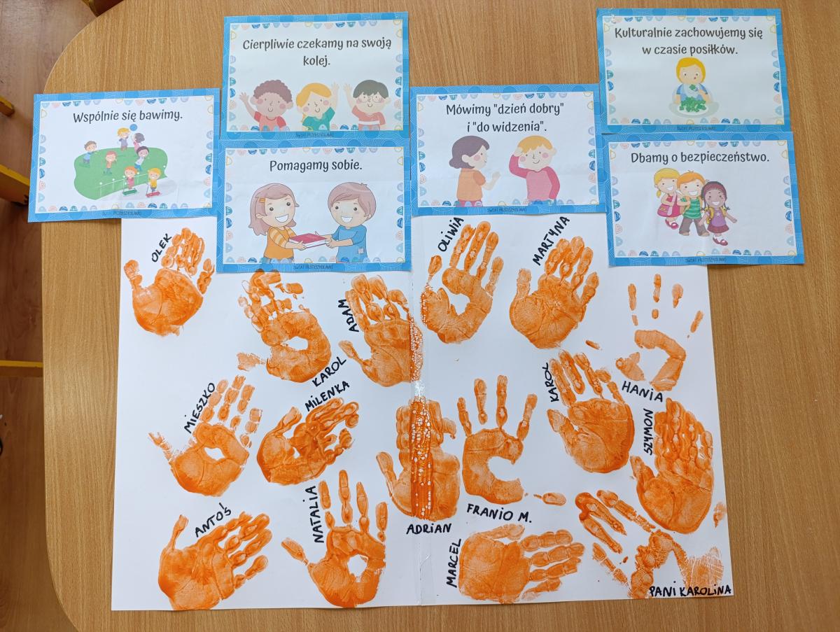 Pierwszy tydzień pobytu dzieci w przedszkolu upłynął na poznawaniu nowego otoczenia, sal oraz pracowników placówki. Przedszkolaki wspólnie stworzyły kodeks grupowy, który będzie im towarzyszył przez cały rok i ułatwi budowanie atmosfery wzajemnego szacunku oraz bezpieczeństwa.