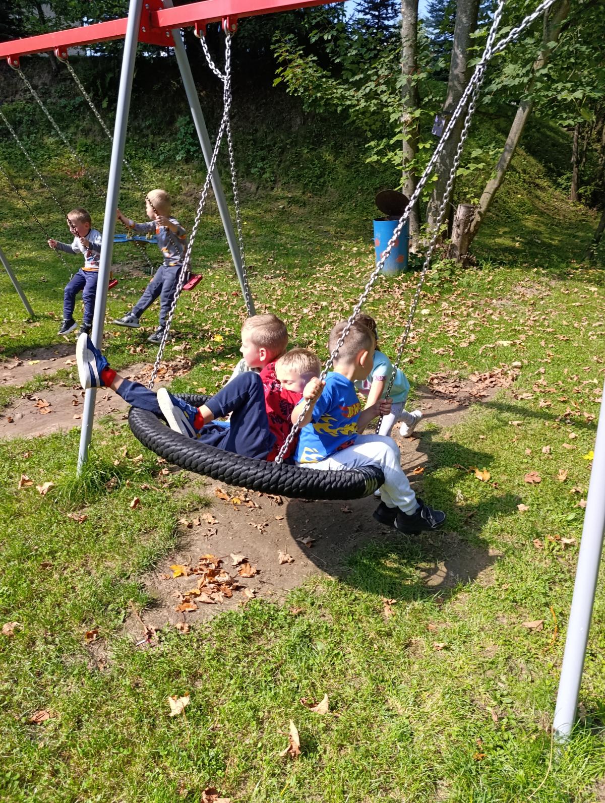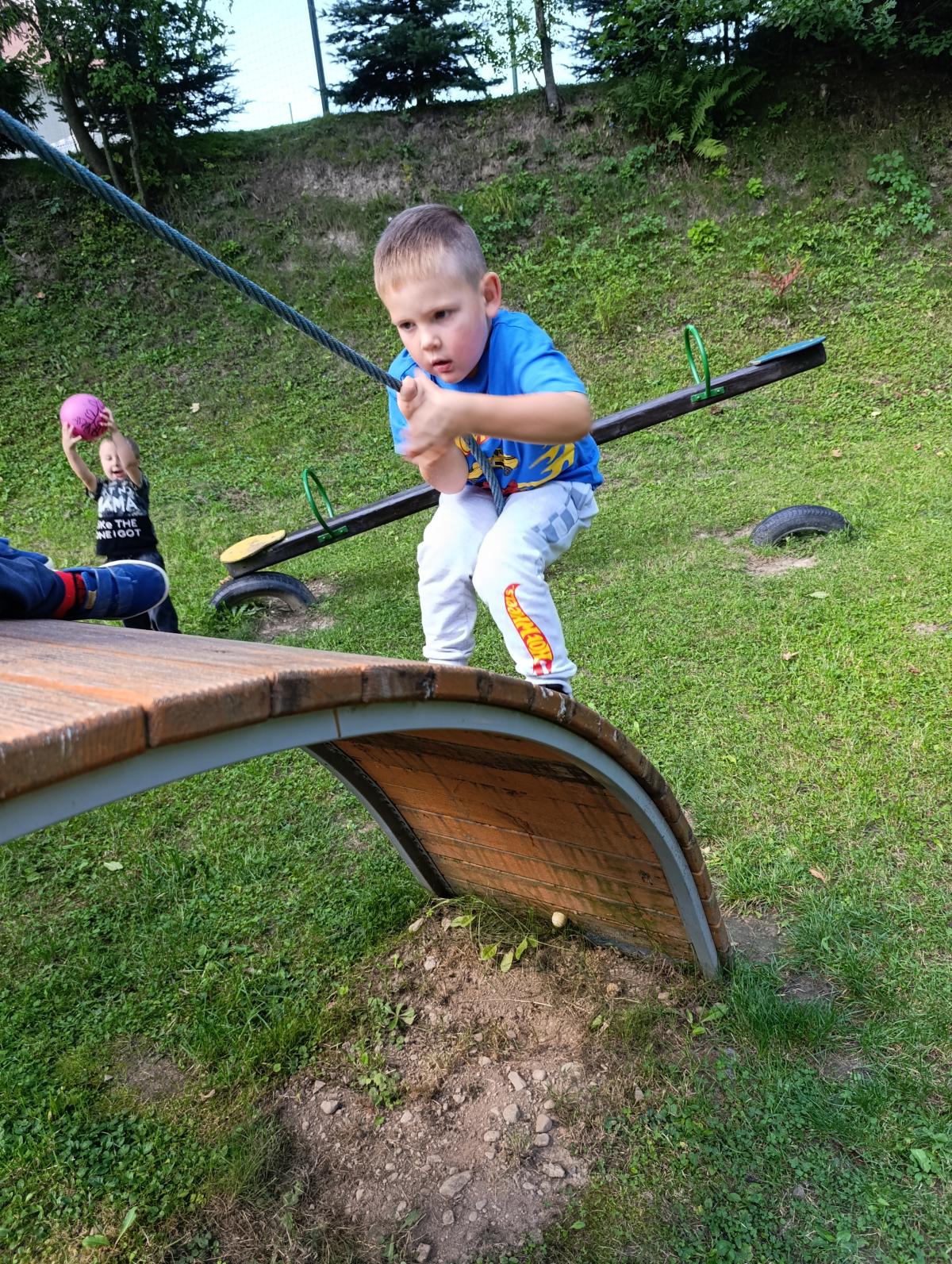Dużo radości sprawiły im codzienne zabawy na świeżym powietrzu, sprzyjające integracji grupy i rozwijaniu sprawności ruchowej.