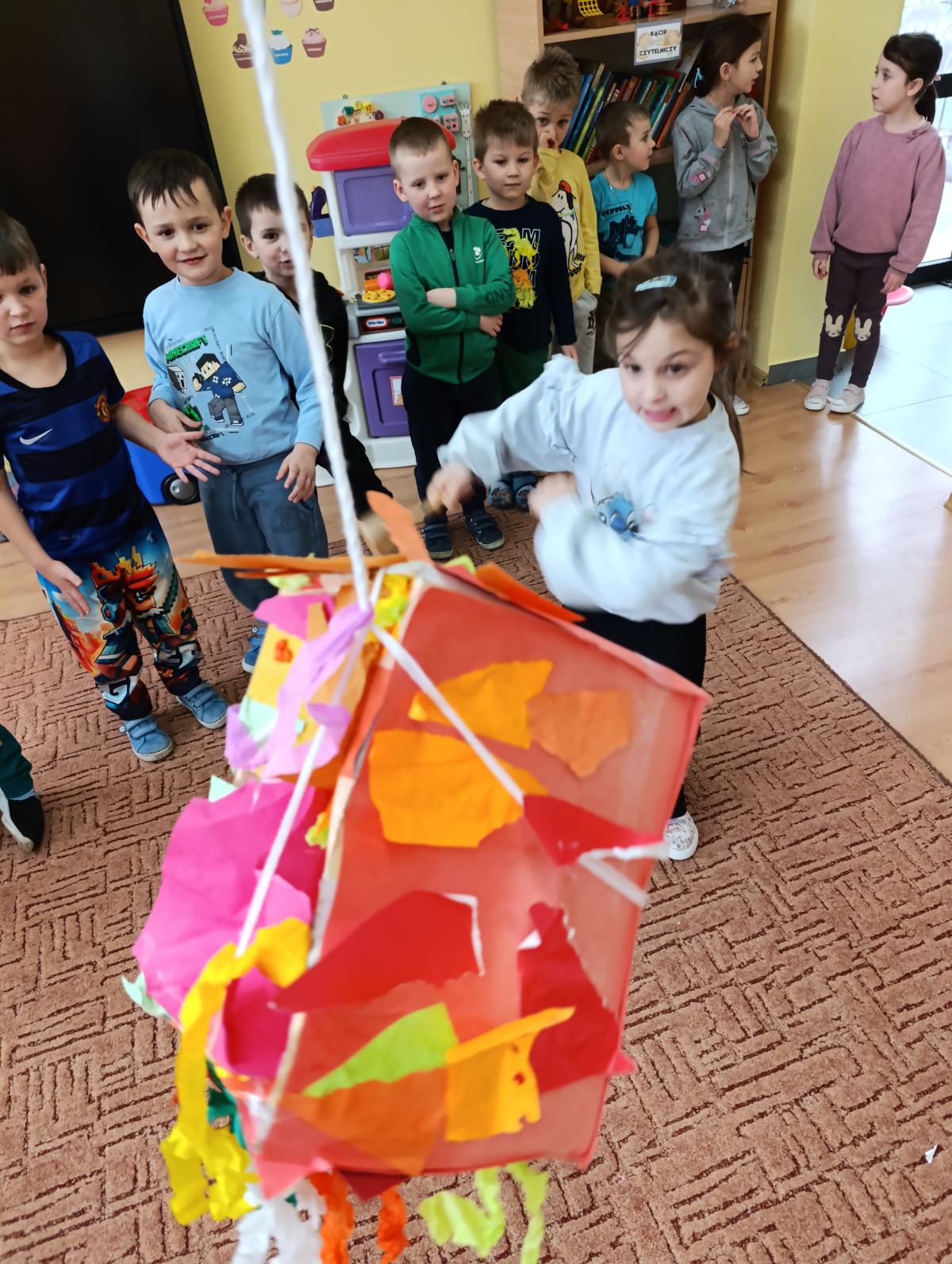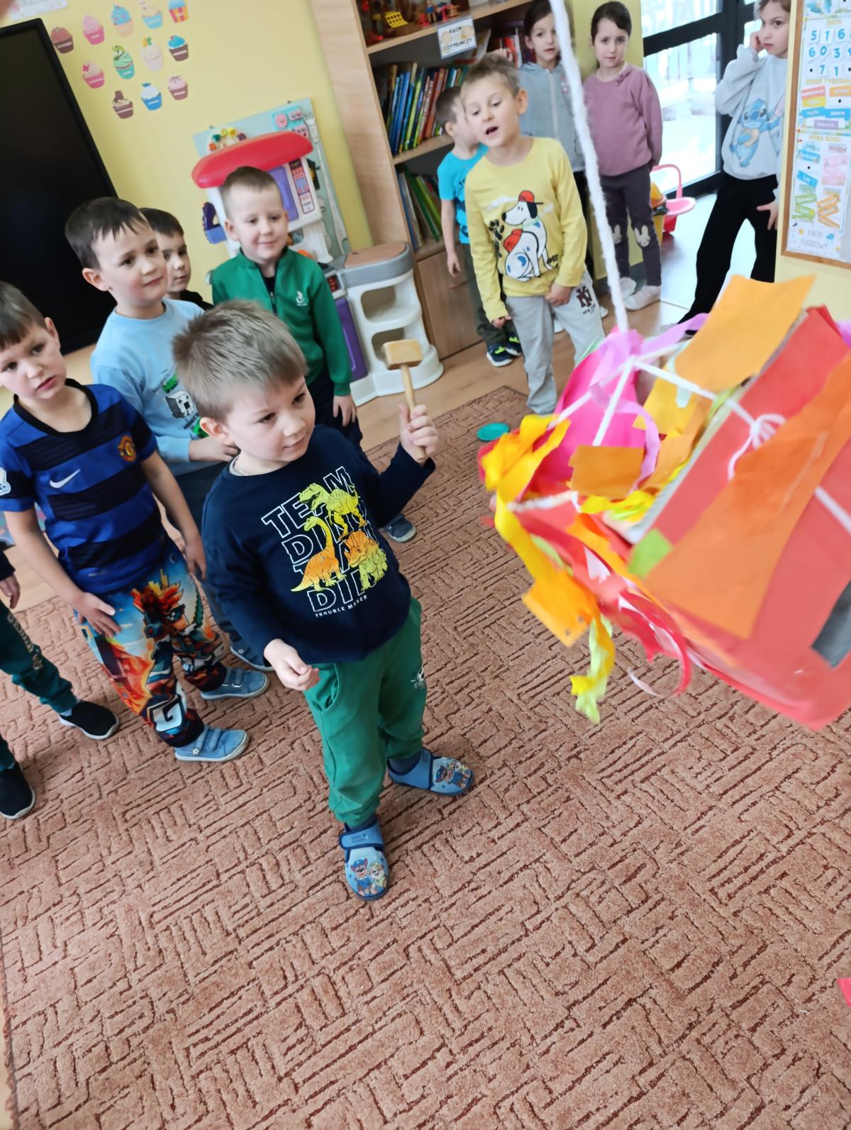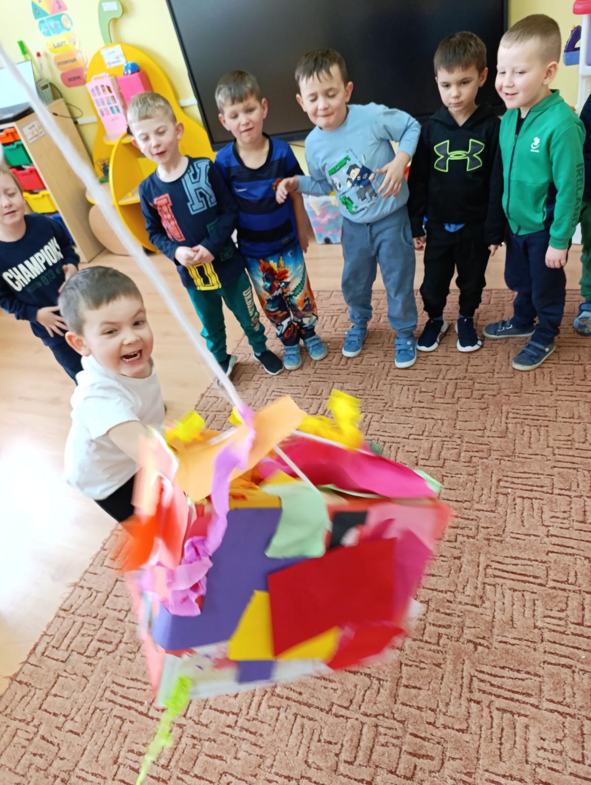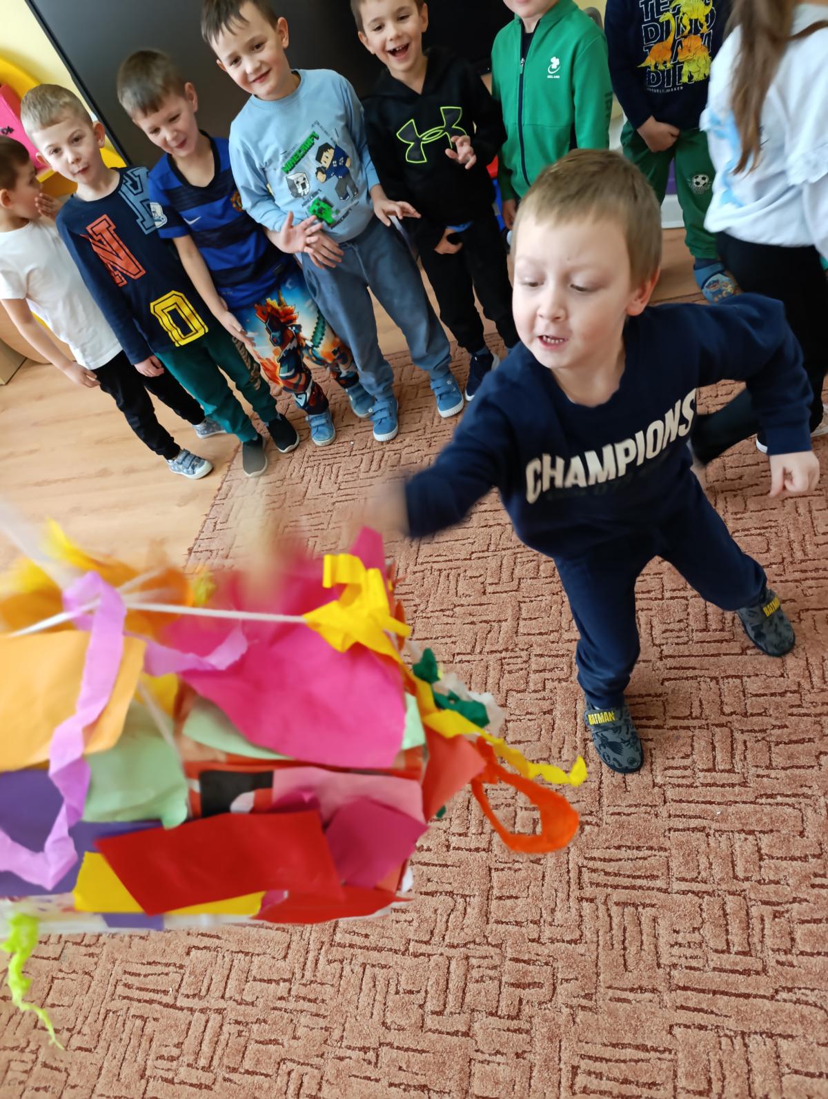 Dzieci wzięły udział w zajęciach kulinarnych, podczas których samodzielnie tworzyły żelki. Następnie wykonały własnoręcznie piniatę, w której ukryte zostały przygotowane wcześniej słodkości. Zajęcia dostarczyły dzieciom wielu pozytywnych emocji i były świetną okazją do wspólnej zabawy.