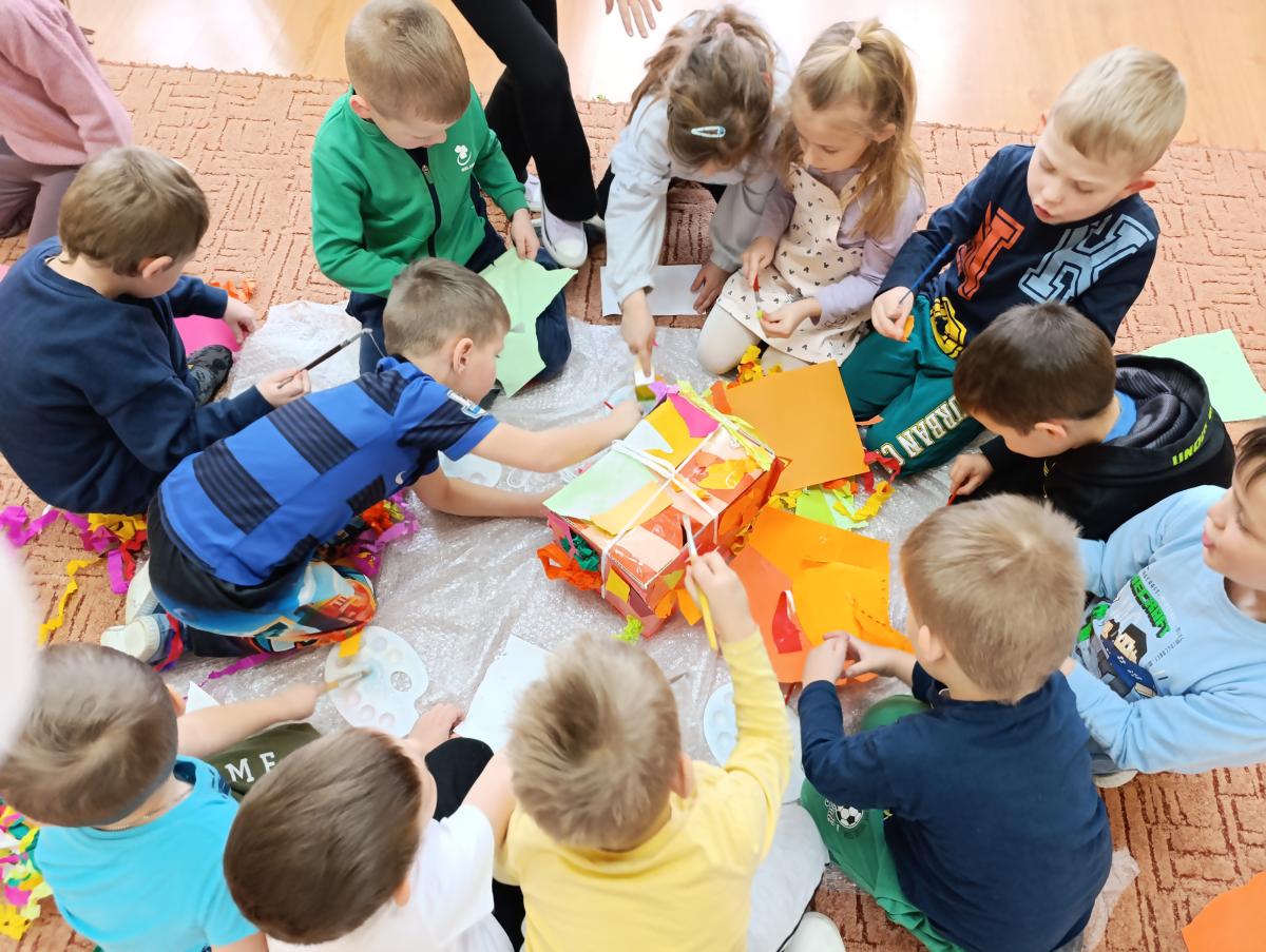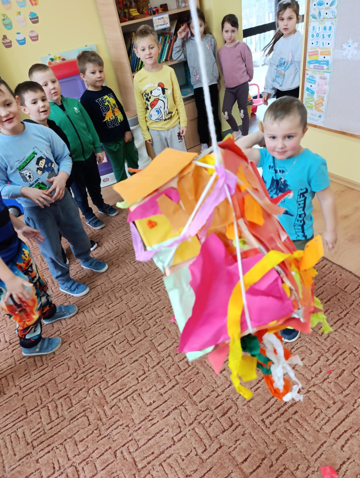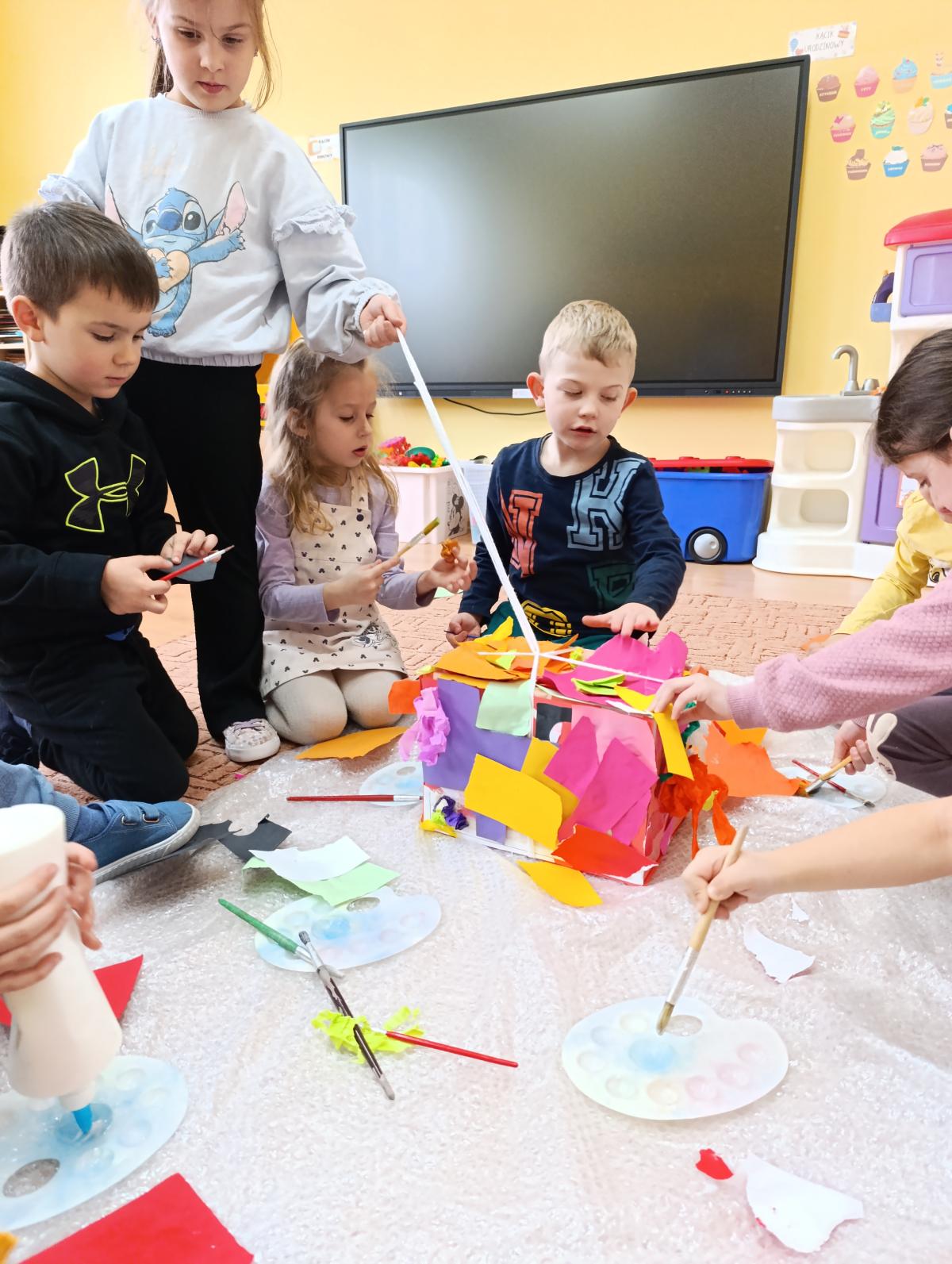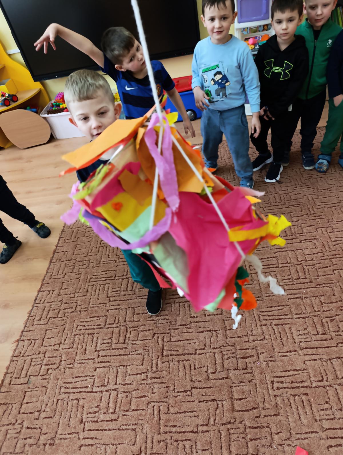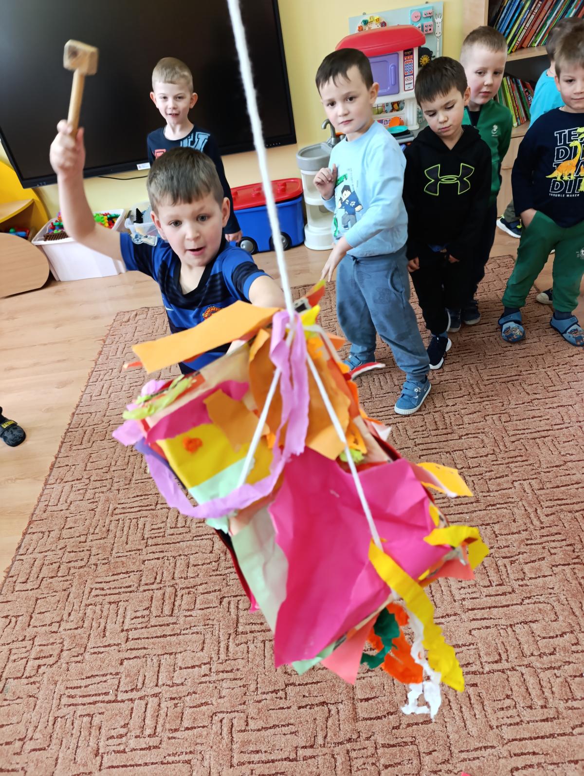 Dzieci wzięły udział w zajęciach kulinarnych, podczas których samodzielnie tworzyły żelki. Następnie wykonały własnoręcznie piniatę, w której ukryte zostały przygotowane wcześniej słodkości. Zajęcia dostarczyły dzieciom wielu pozytywnych emocji i były świetną okazją do wspólnej zabawy.