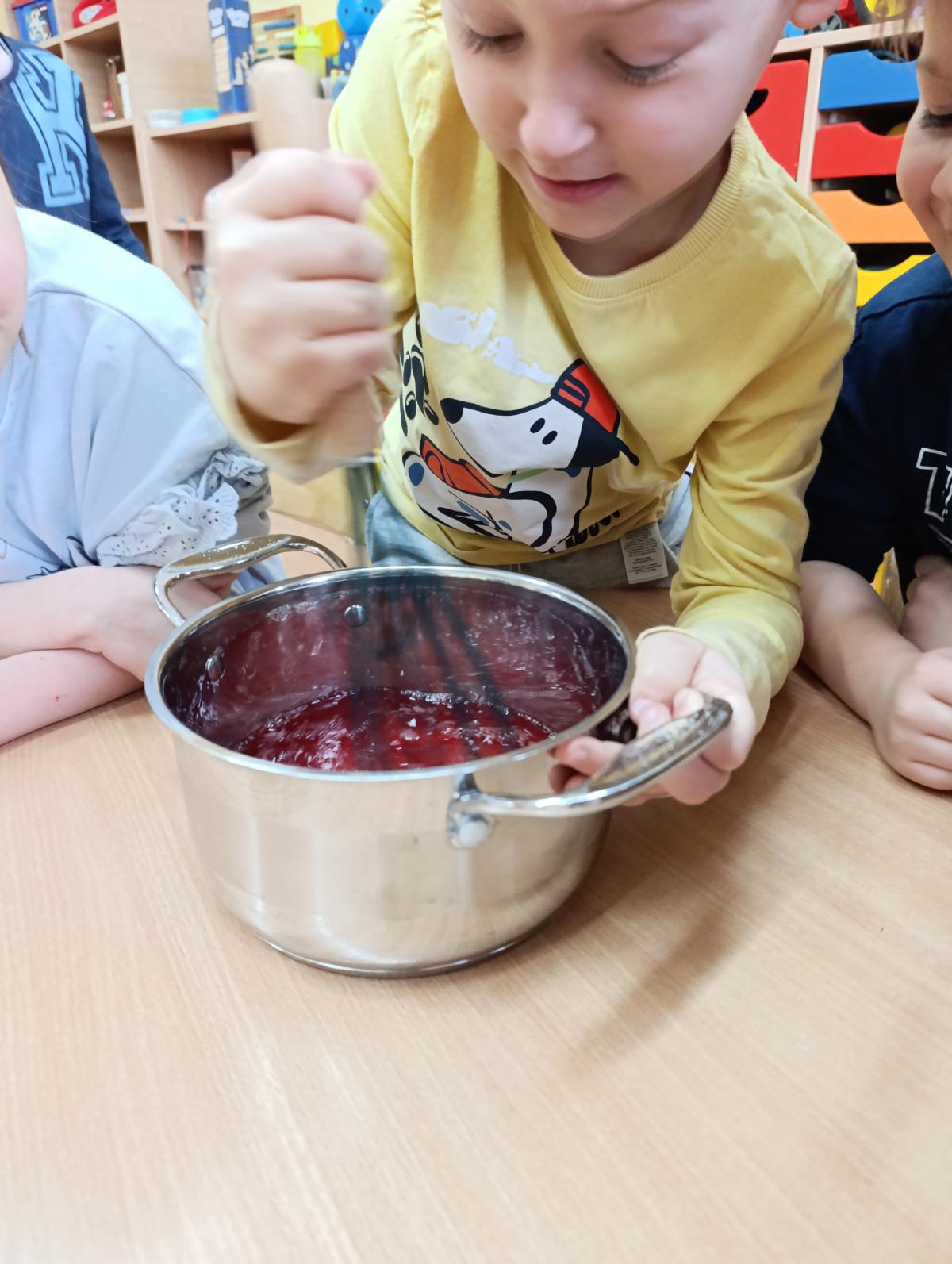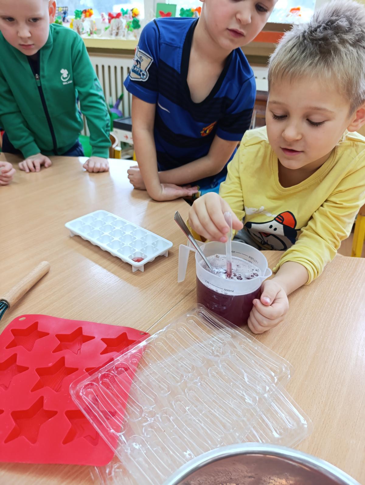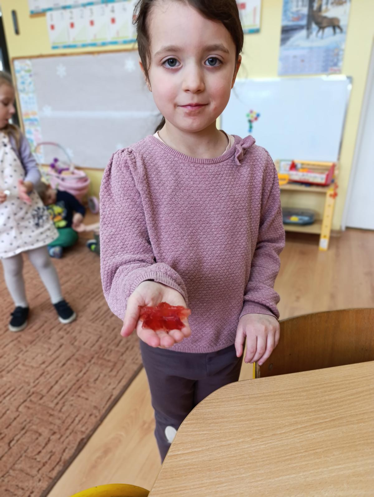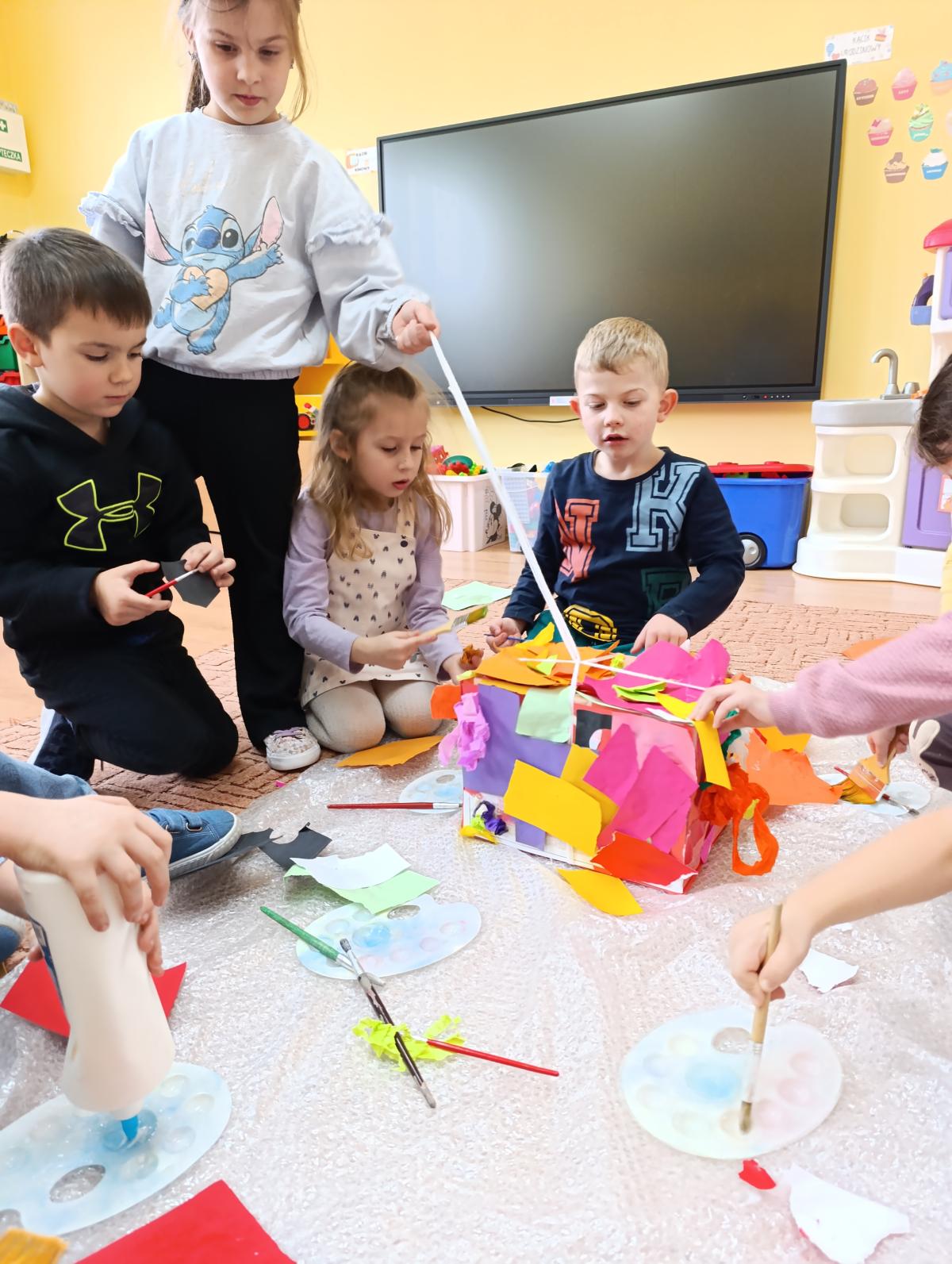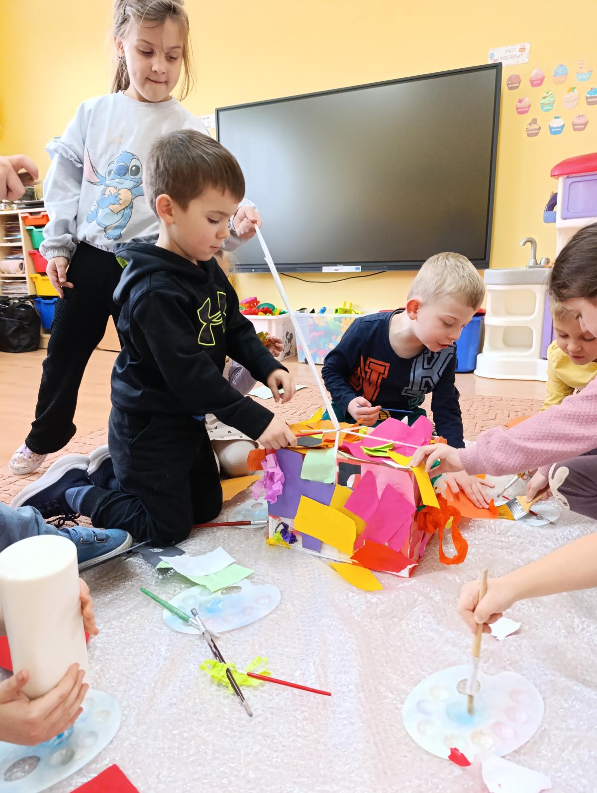 Dzieci wzięły udział w zajęciach kulinarnych, podczas których samodzielnie tworzyły żelki. Następnie wykonały własnoręcznie piniatę, w której ukryte zostały przygotowane wcześniej słodkości. Zajęcia dostarczyły dzieciom wielu pozytywnych emocji i były świetną okazją do wspólnej zabawy.