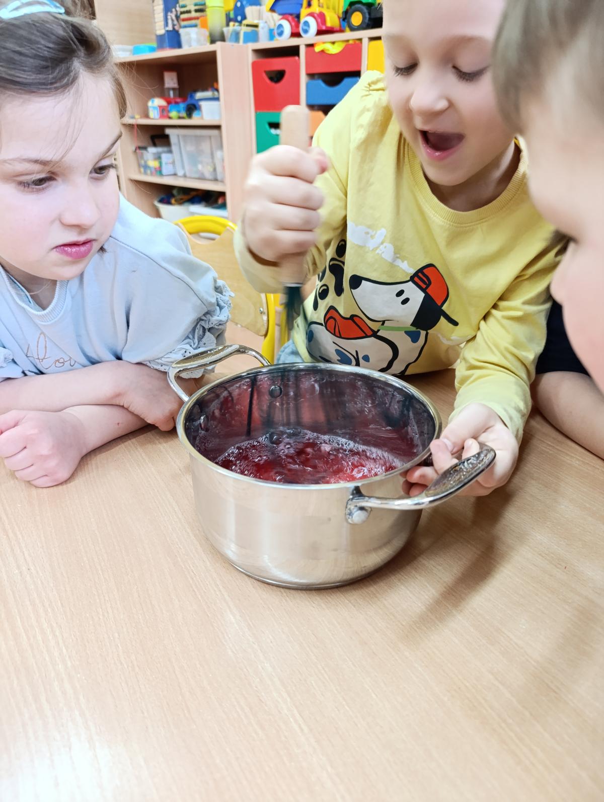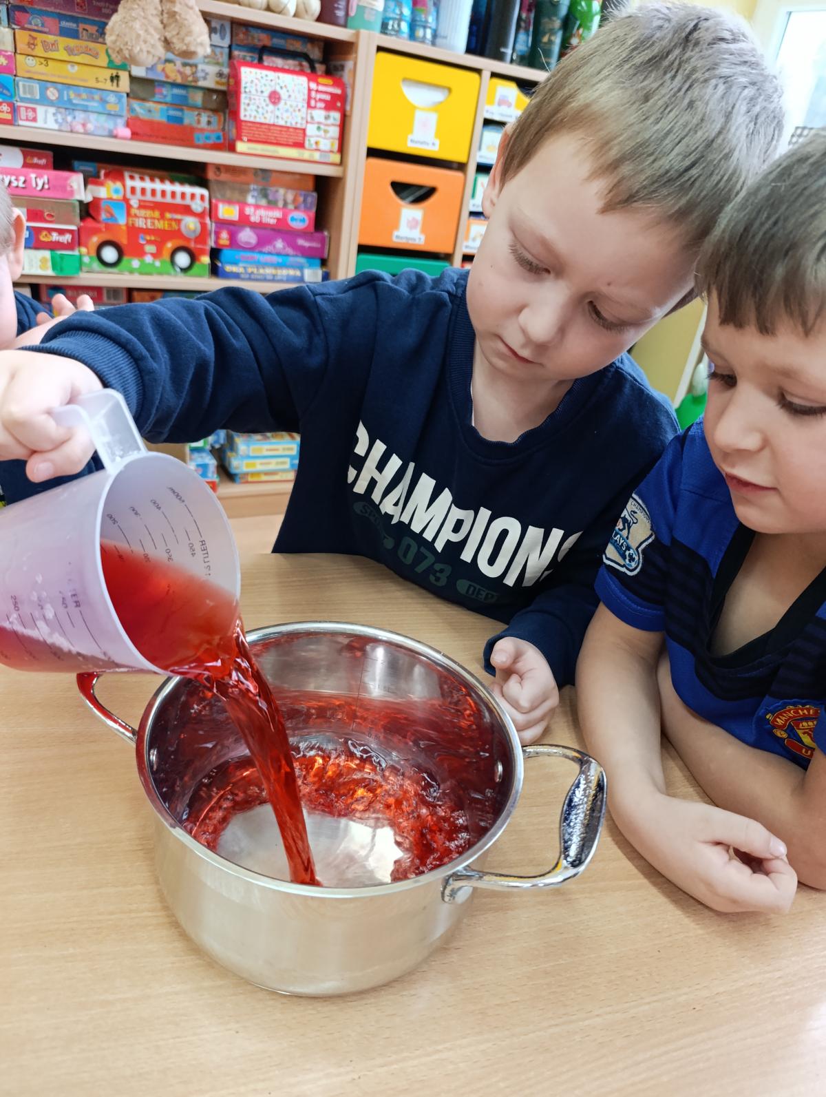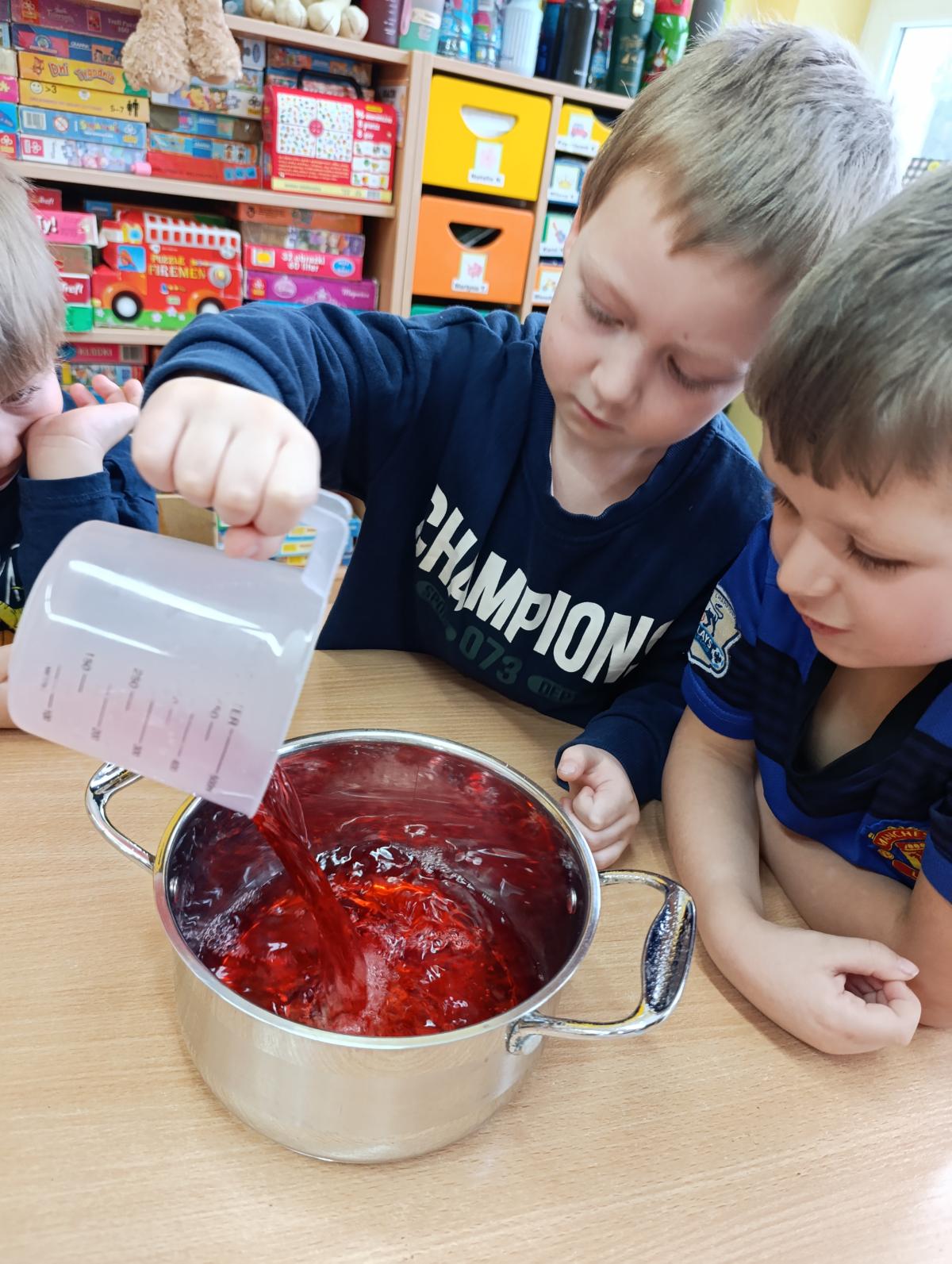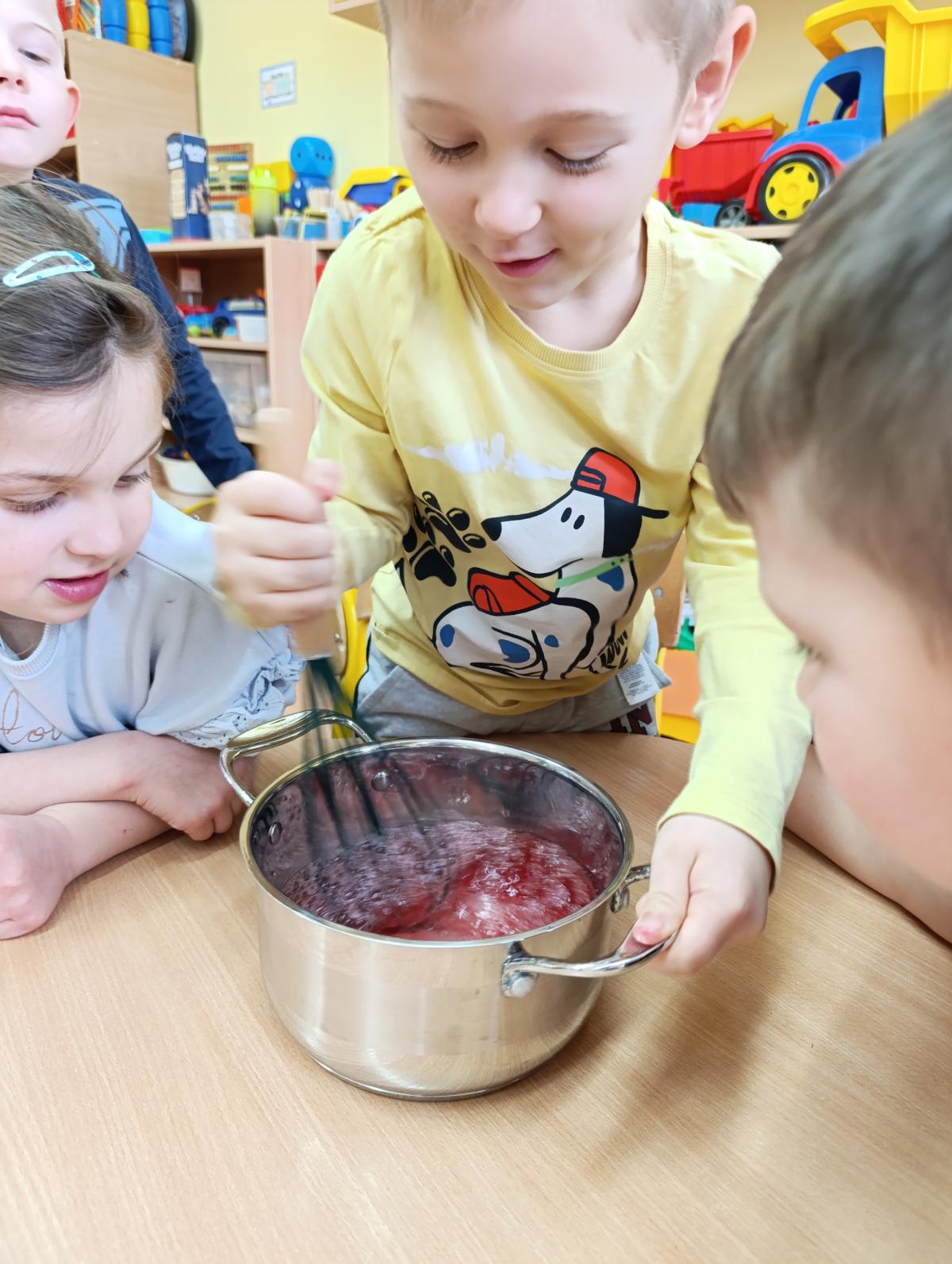 Dzieci wzięły udział w zajęciach kulinarnych, podczas których samodzielnie tworzyły żelki. Następnie wykonały własnoręcznie piniatę, w której ukryte zostały przygotowane wcześniej słodkości. Zajęcia dostarczyły dzieciom wielu pozytywnych emocji i były świetną okazją do wspólnej zabawy.