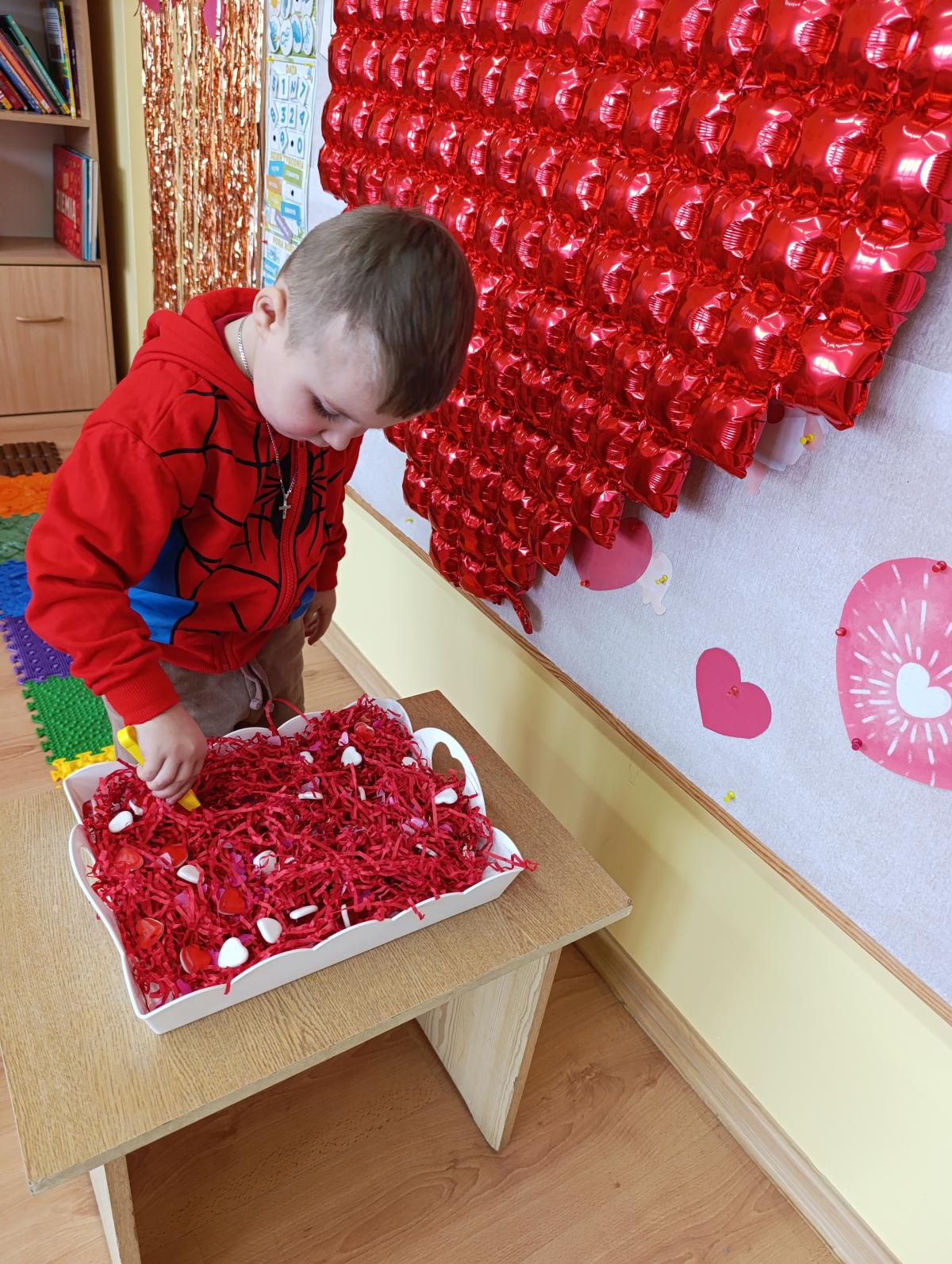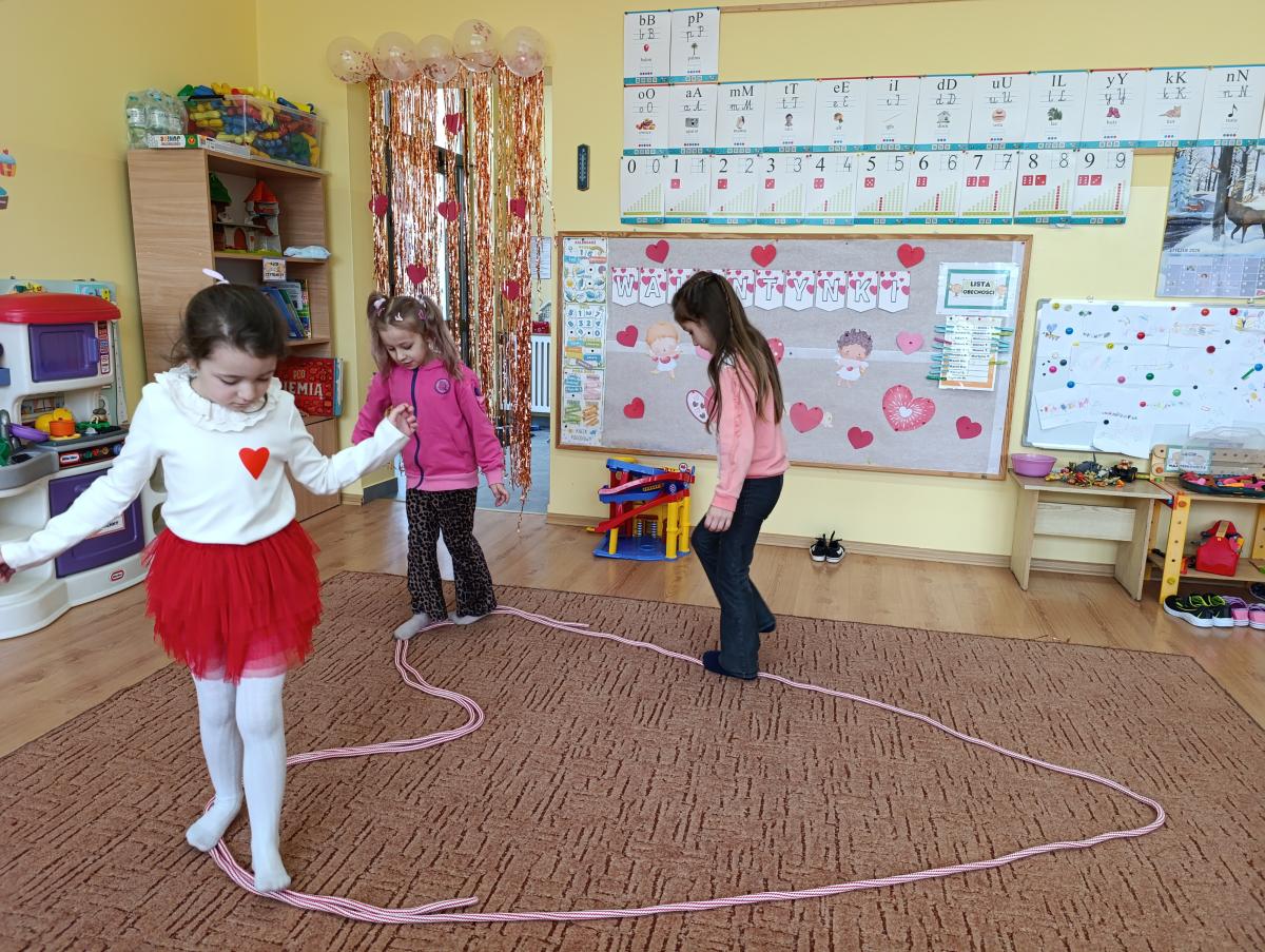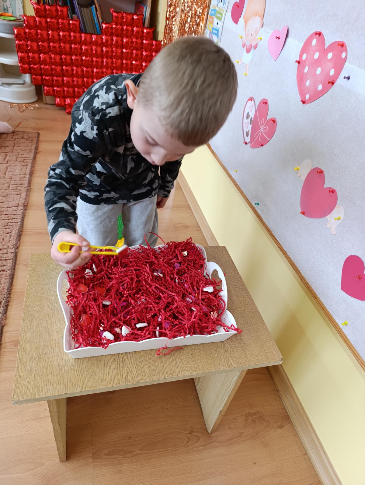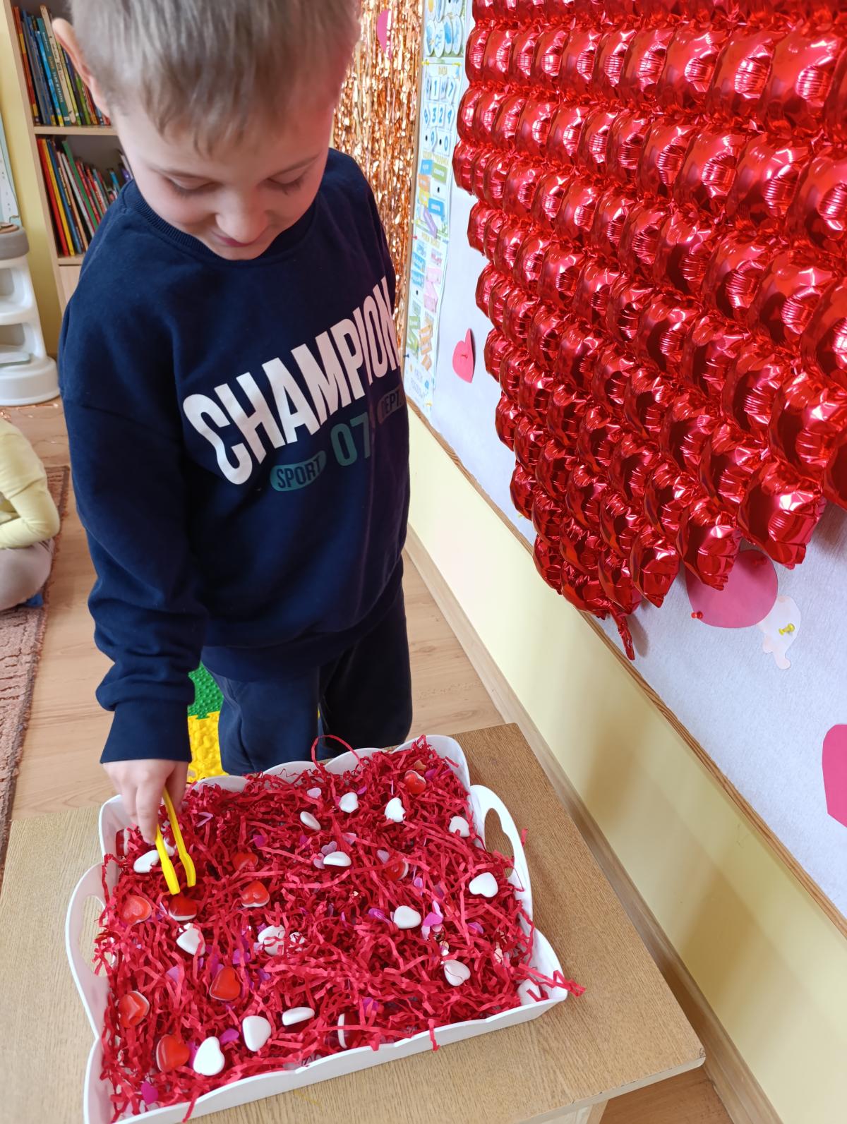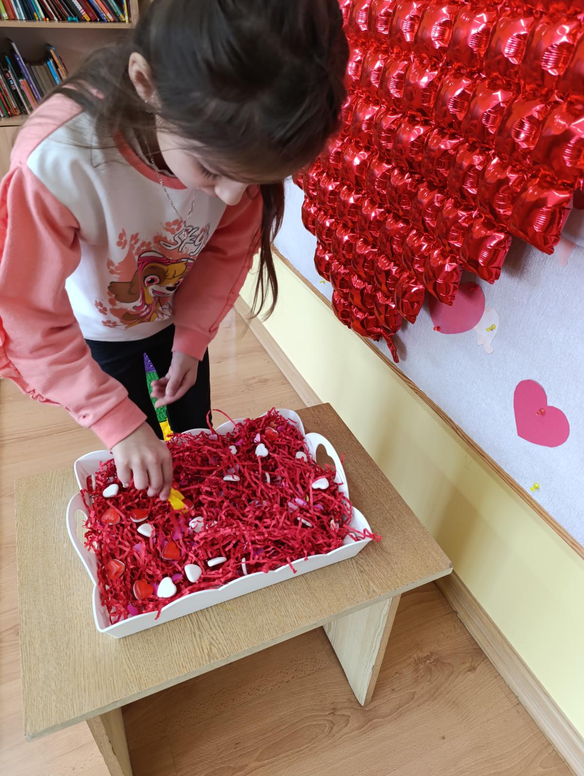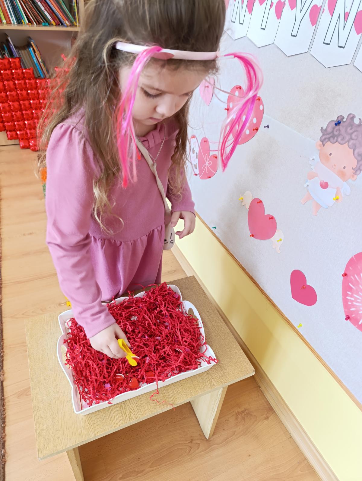 Nie zabrakło twórczych aktywności – mali artyści przygotowywali własne walentynki, które później wrzucali do specjalnej skrzynki. W trakcie dnia odbywały się również wesołe zabawy z serduszkami oraz zajęcia sensoryczne, które pobudzały wyobraźnię i zachęcały do wspólnej zabawy.