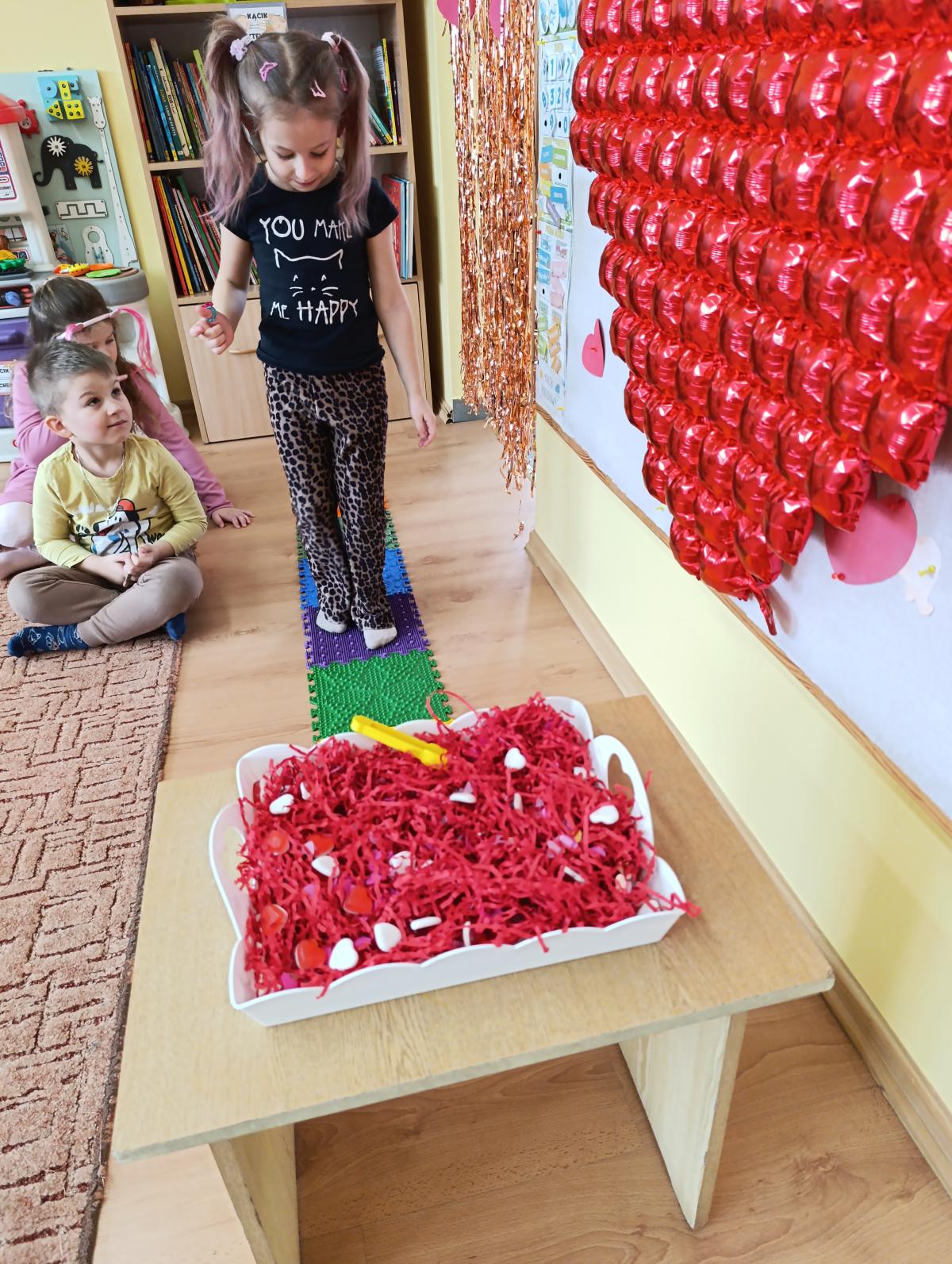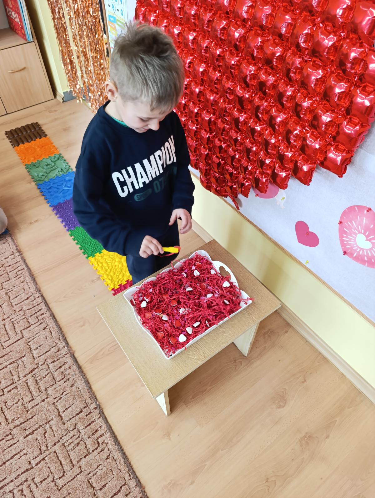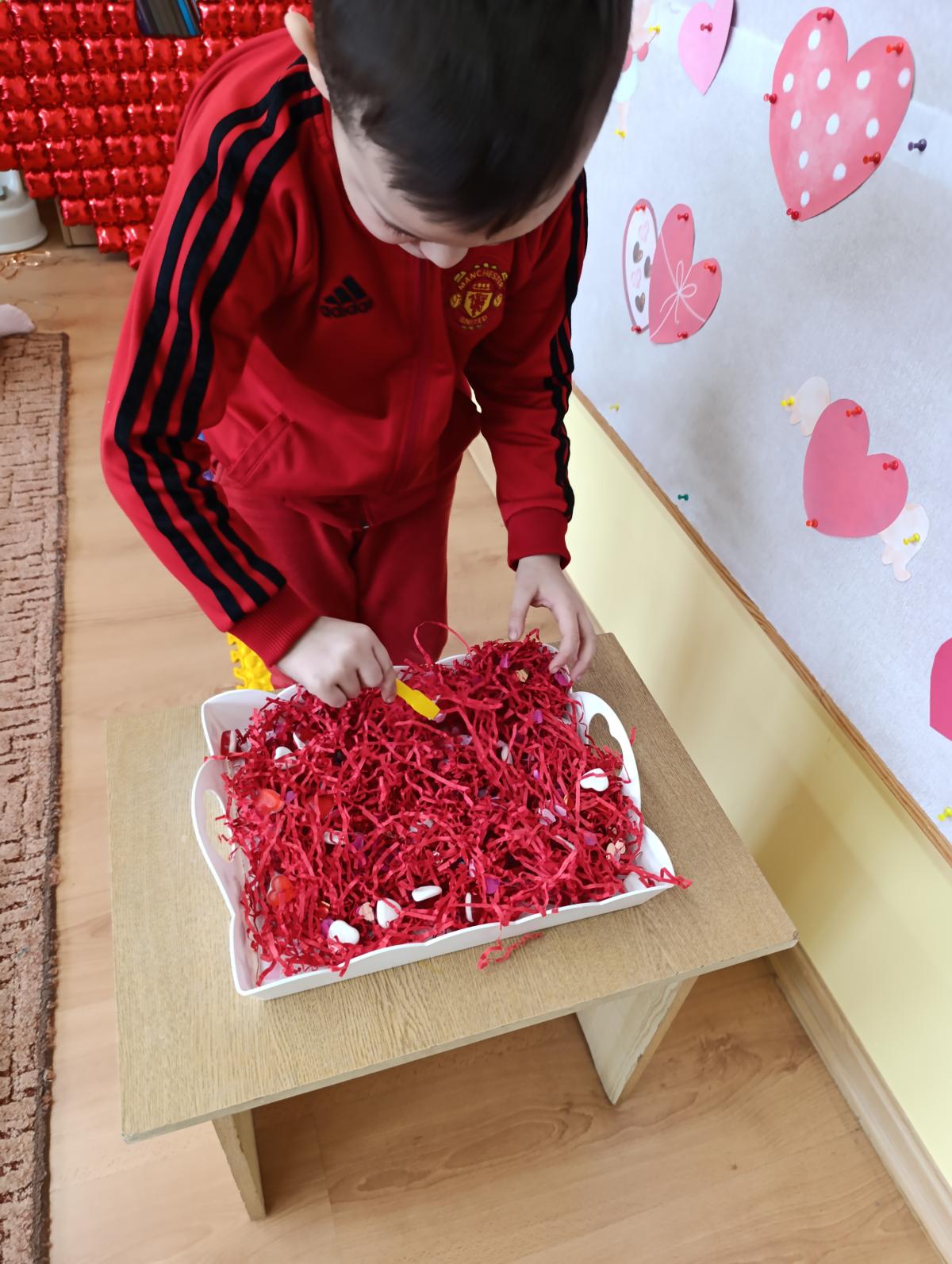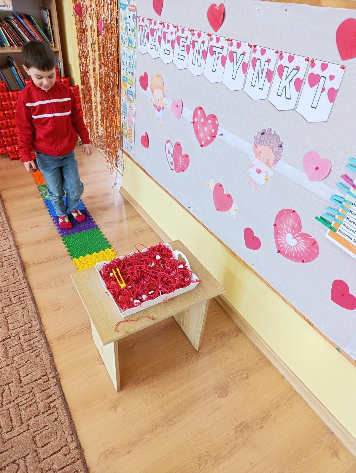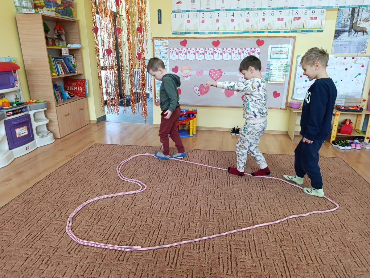 Nie zabrakło twórczych aktywności – mali artyści przygotowywali własne walentynki, które później wrzucali do specjalnej skrzynki. W trakcie dnia odbywały się również wesołe zabawy z serduszkami oraz zajęcia sensoryczne, które pobudzały wyobraźnię i zachęcały do wspólnej zabawy.
