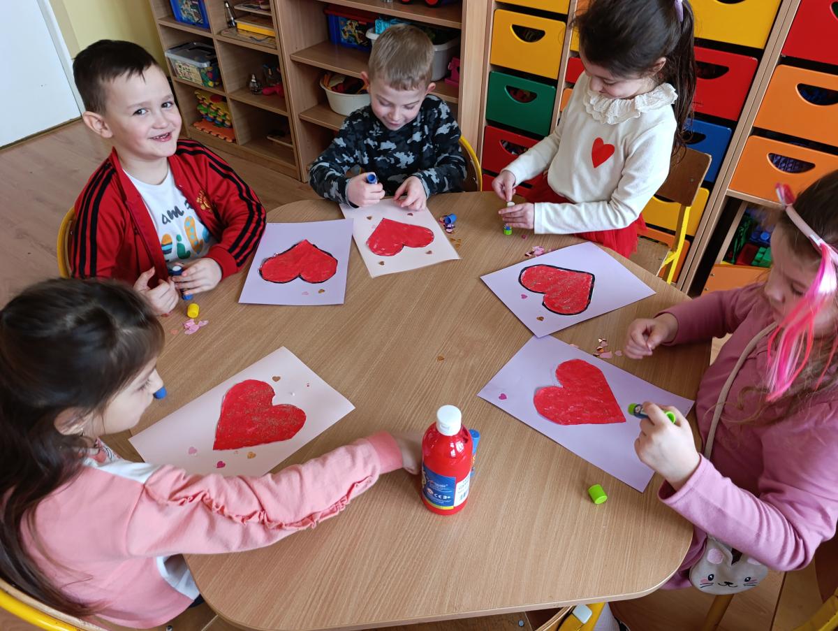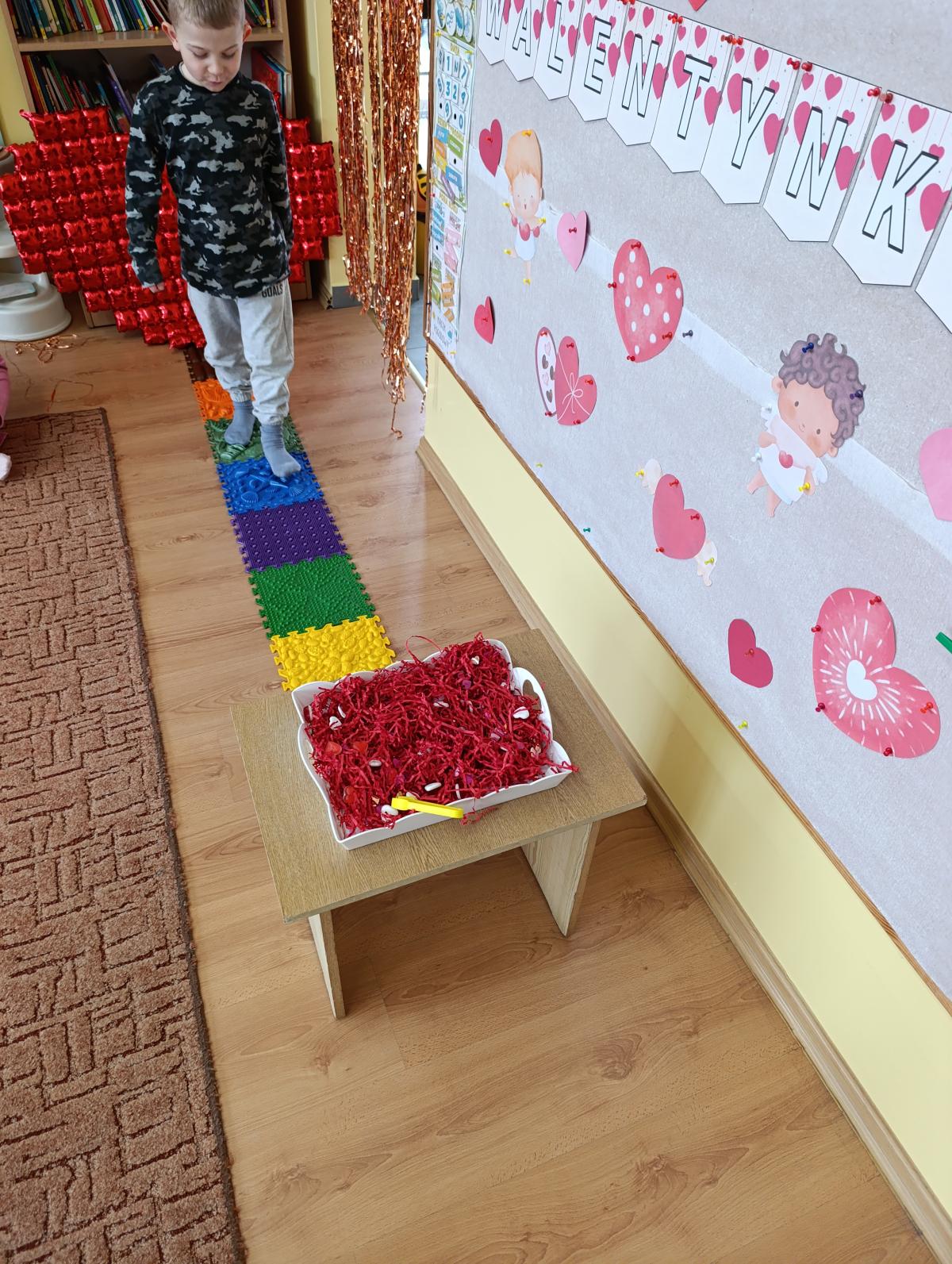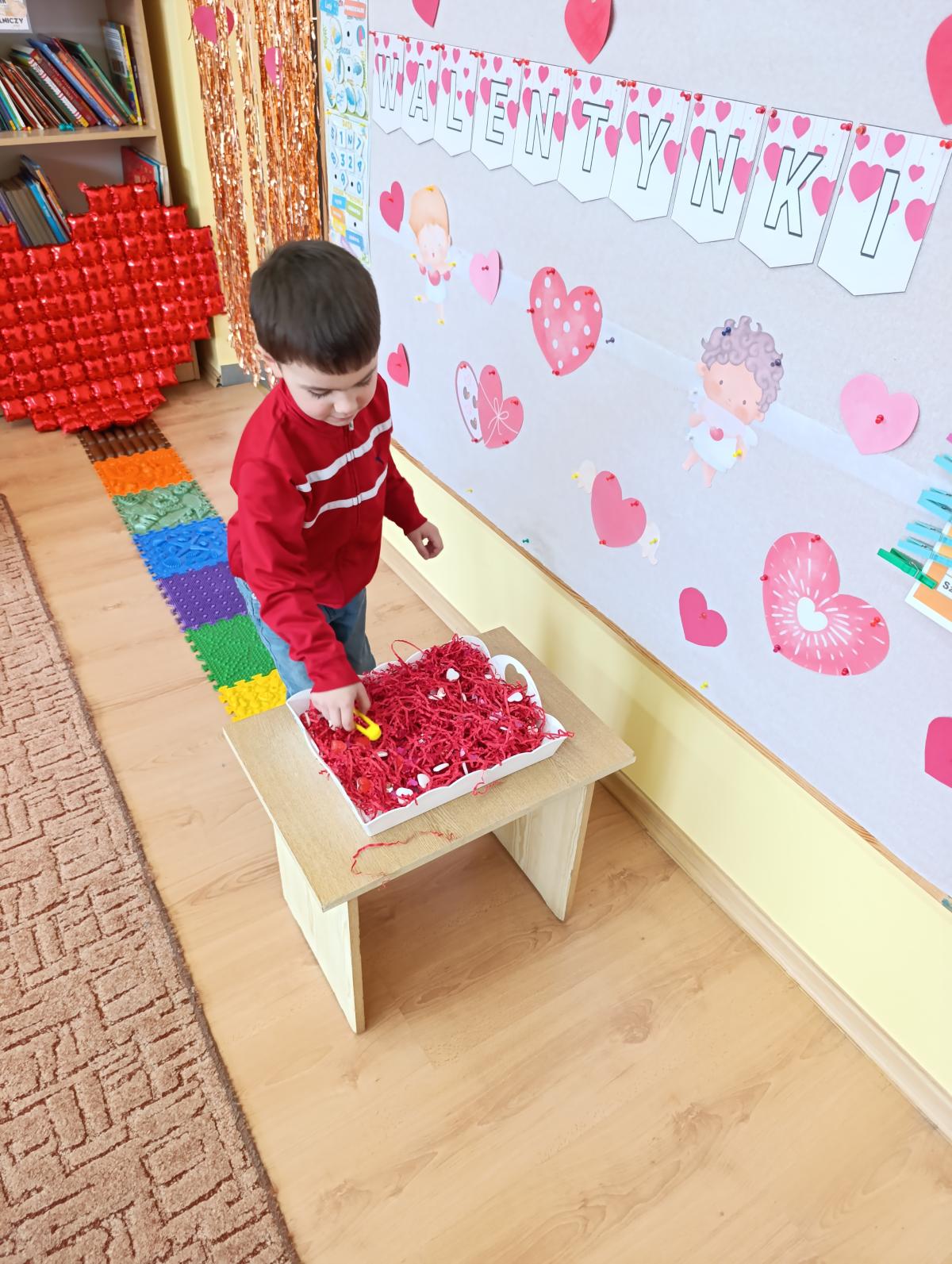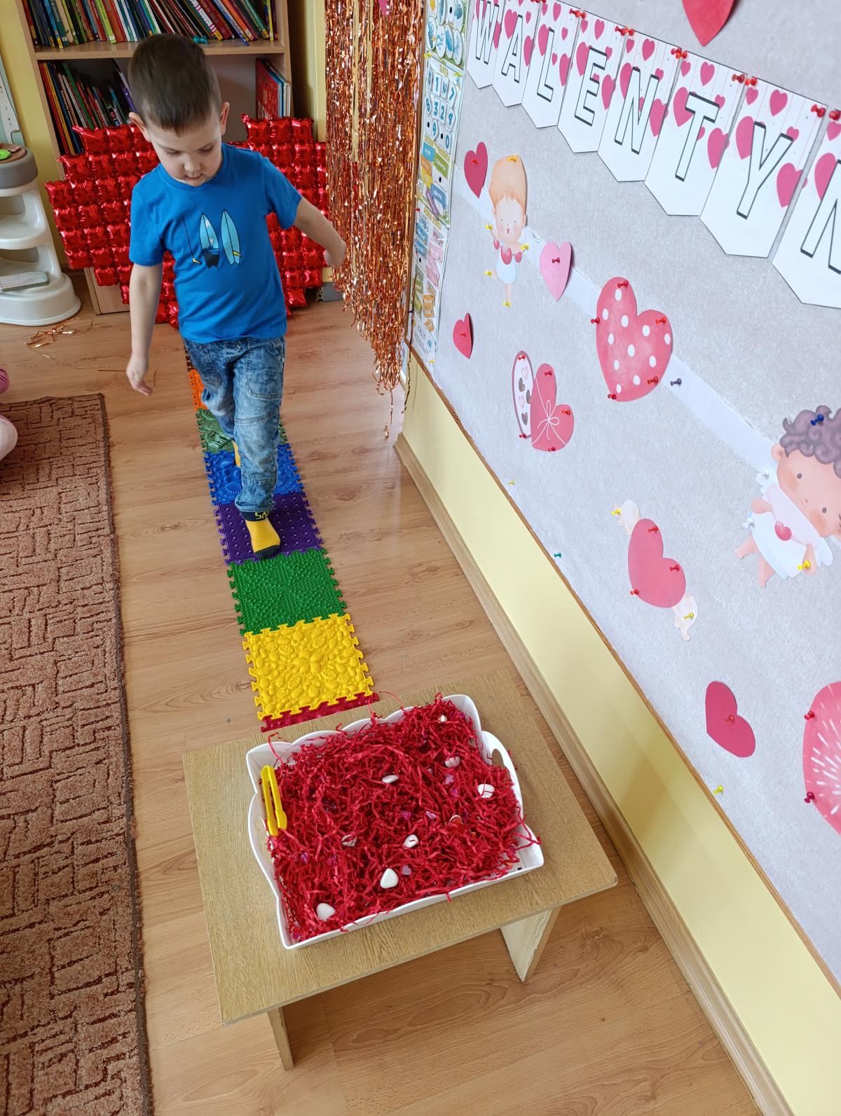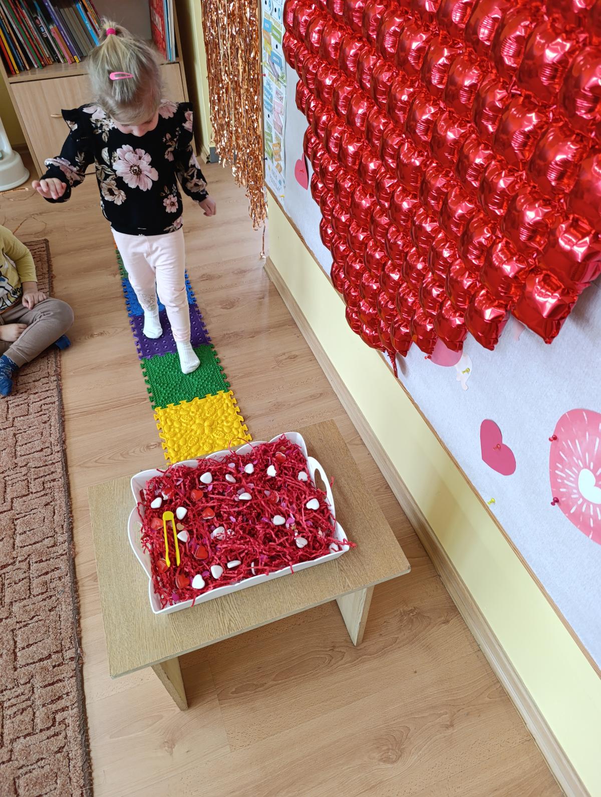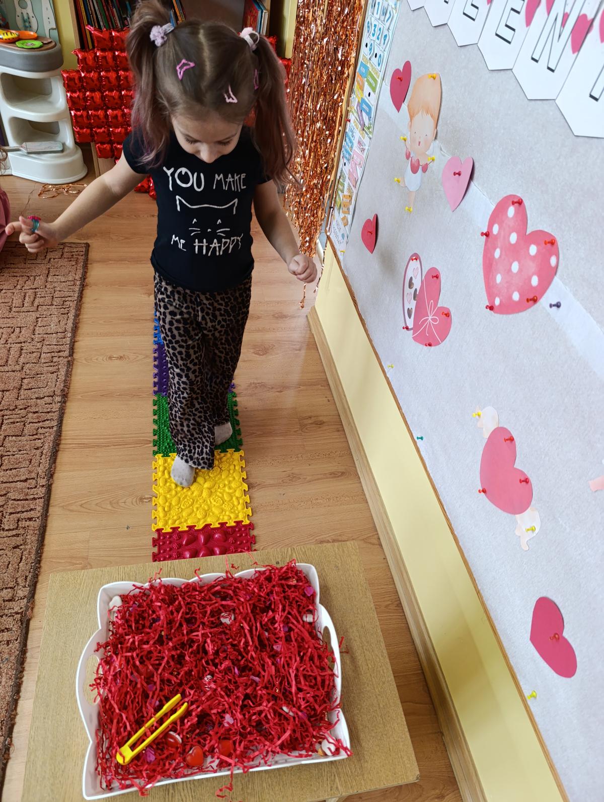 Nie zabrakło twórczych aktywności – mali artyści przygotowywali własne walentynki, które później wrzucali do specjalnej skrzynki. W trakcie dnia odbywały się również wesołe zabawy z serduszkami oraz zajęcia sensoryczne, które pobudzały wyobraźnię i zachęcały do wspólnej zabawy.