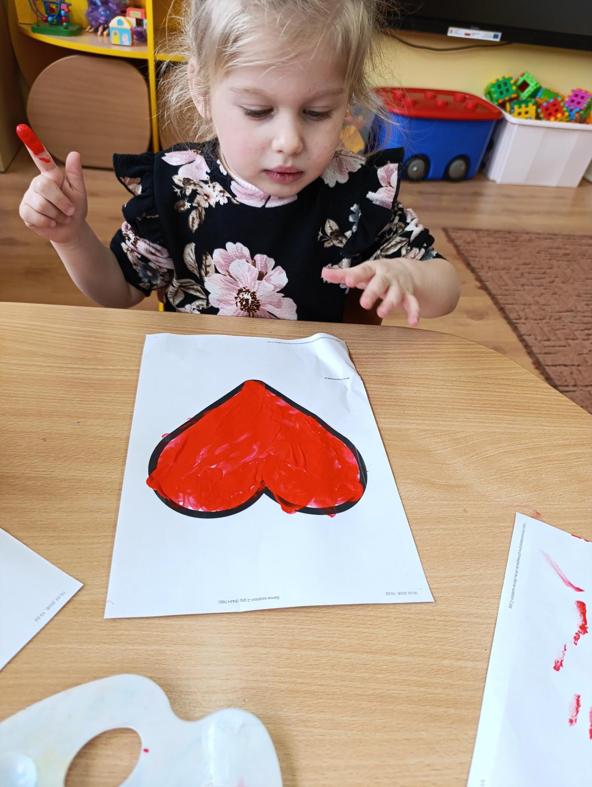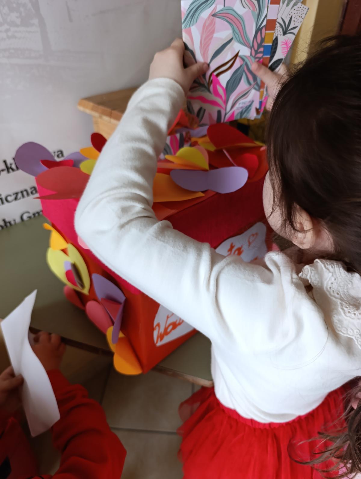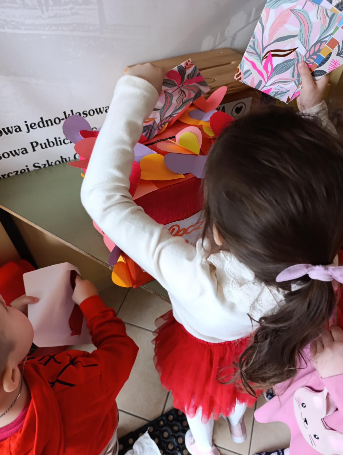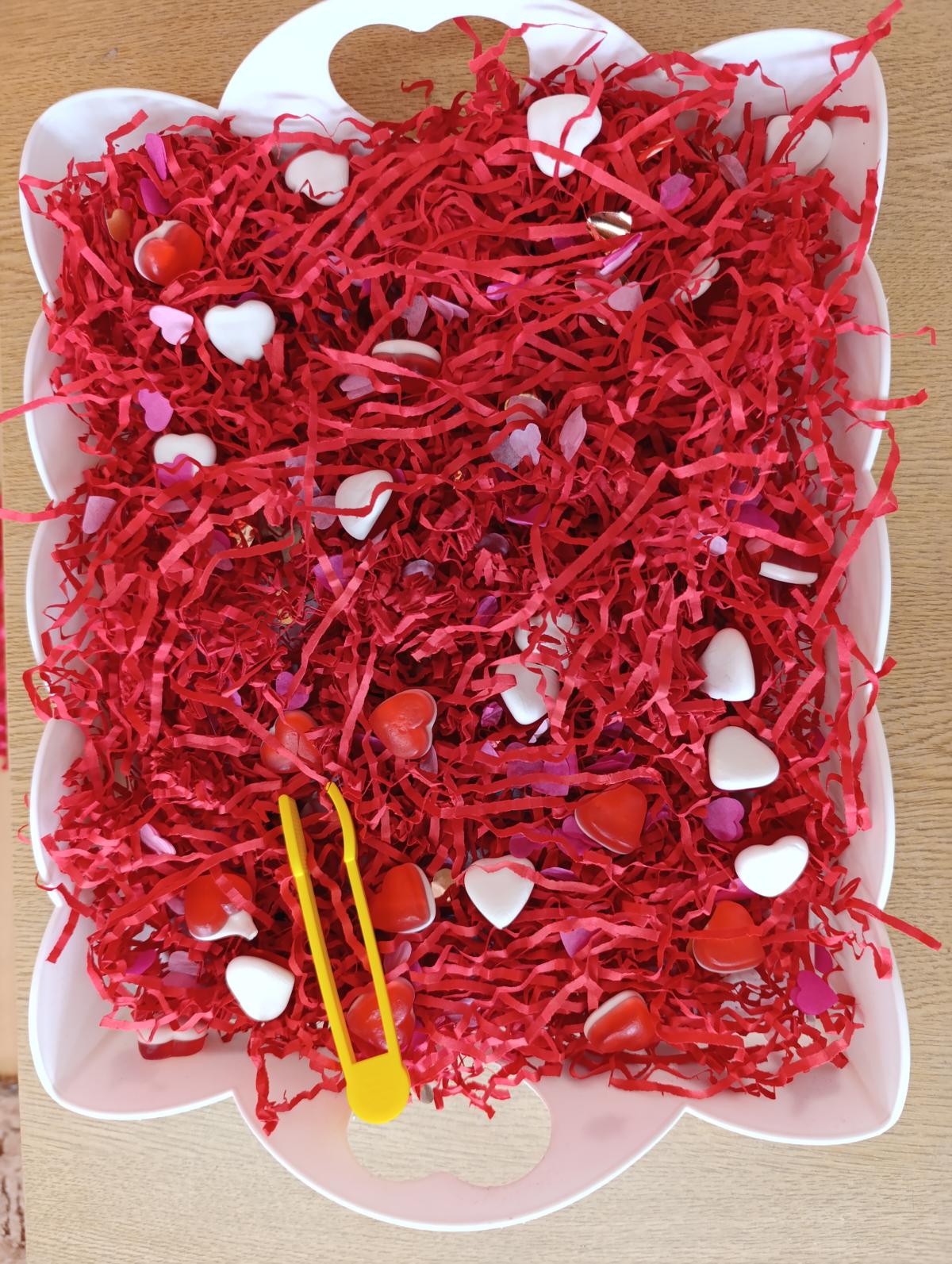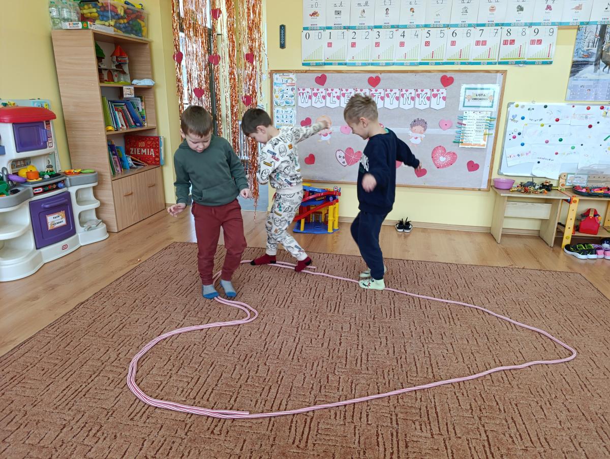 Nie zabrakło twórczych aktywności – mali artyści przygotowywali własne walentynki, które później wrzucali do specjalnej skrzynki. W trakcie dnia odbywały się również wesołe zabawy z serduszkami oraz zajęcia sensoryczne, które pobudzały wyobraźnię i zachęcały do wspólnej zabawy.