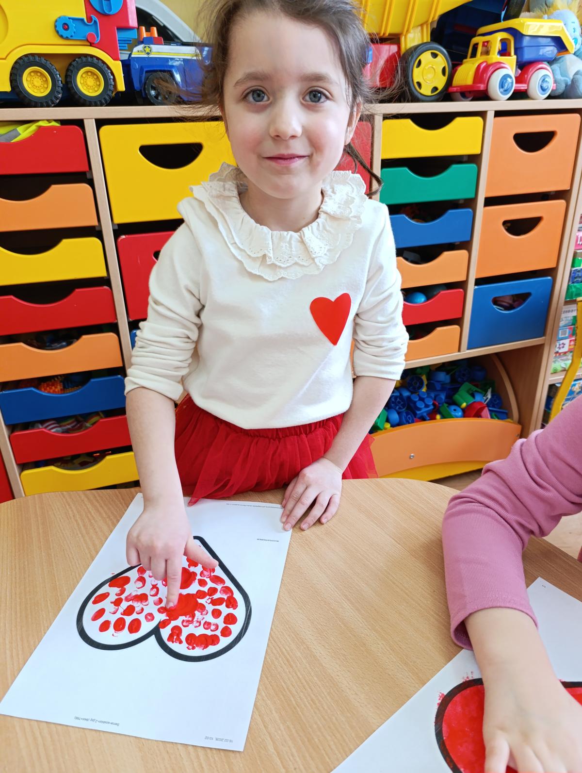 Kulminacją obchodów była praca plastyczna – dzieci tworzyły piękne serca, które zdobiły naszą salę. Całość dopełniały walentynkowe stroje przedszkolaków, pełne czerwieni i różu, wprowadzając jeszcze więcej świątecznej atmosfery.